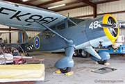 He jumped into his truck as we walked down two rows of hangers to his next treasure. On opening the hangar he again asked us to guess what this aircraft was. No one knew, and not being able to contain himself any longer, he told us that it was a Stinson-Vultee V77.