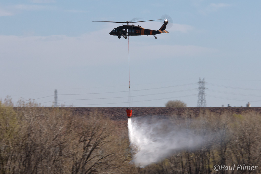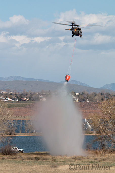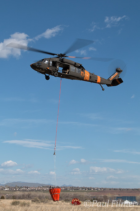 As another potentially busy fire season in Colorado draws near, the Colorado Army National Guard (CO ARNG) have been performing their annual Bambi Bucket training at Chatfield State Park south of Denver, plus at the publicly inaccessible Stronita Springs Reservoir a few minutes flying from Chatfield.