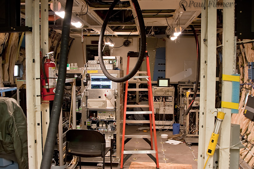 Both the Gulfstream V and the EC-130Q are configured to accept racks of up to 350 lbs of scientific equipment and each rack must be weighed and positioned so that the aircraft is configured within centre of gravity specifications for each specific mission. As each of these missions is unique, the scientists must produce data stating the individual component weights and dimensions, centre of gravity distance from the panel and the total moment. It's a complicated business but these must fall within the limits specified on a NCAR supplied graph to ensure that the aircraft is operated safely.