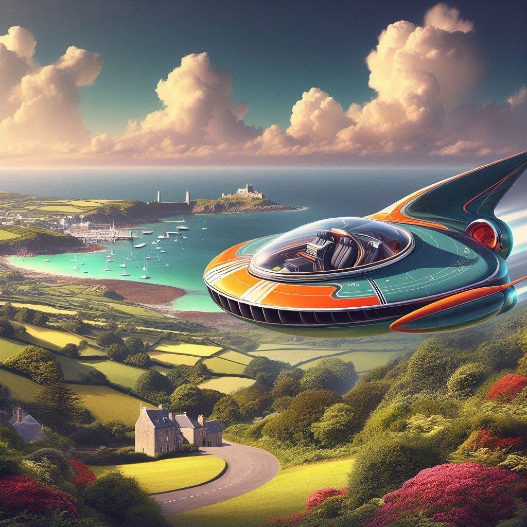 AI generated 1950s concept of a spacecraft from Bailiwick of Guernsey, Channel Islands