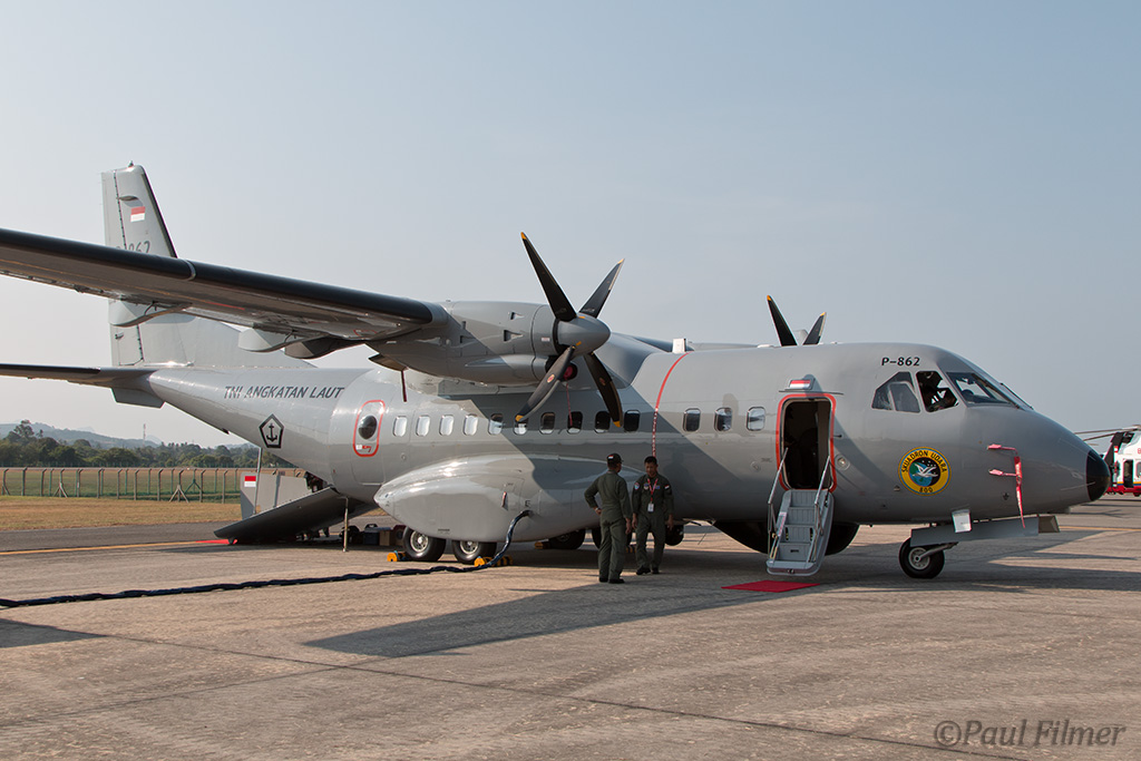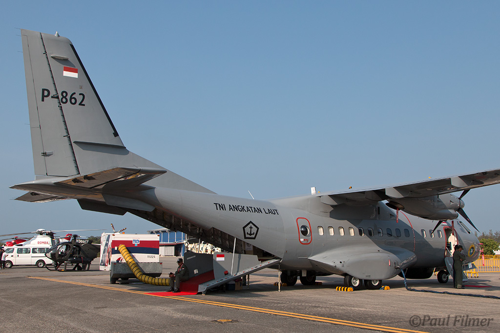 We shot another pair of Indonesian aircraft: the Navy CASA 295MPA was parked in the static display, and the Air Force Boeing 737-400 was visiting as support.