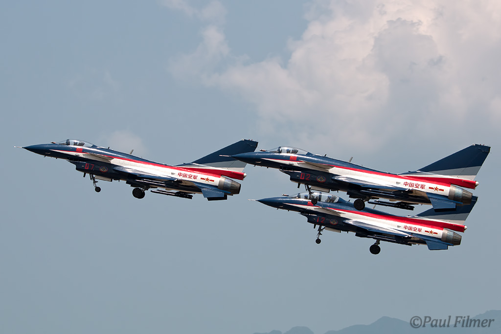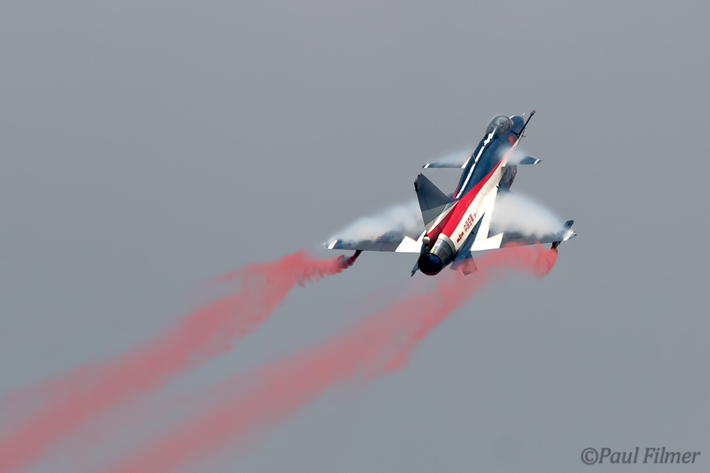 The next day we were ready at sunrise and our patience paid off as mid-morning both Il-76s arrived. This was the second time I'd shot the Chinese J-10s and their support, the first being MAKS in Russia two years ago. This was only the team's second trip outside China, and the first time they had female pilots in the team at an international event, with four women participating.