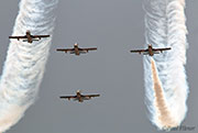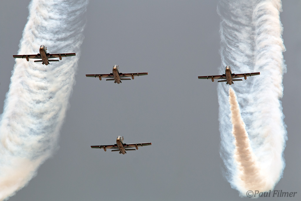 The Indonesian Air Force display team, The Jupiters, flying KT-1B fast trainers, departed for home after being involved in an accident the previous week in which they lost two aircraft; thankfully, all four pilots ejected successfully. The KT-1B Woongbi is an indigenous aircraft from the Republic of Korea.