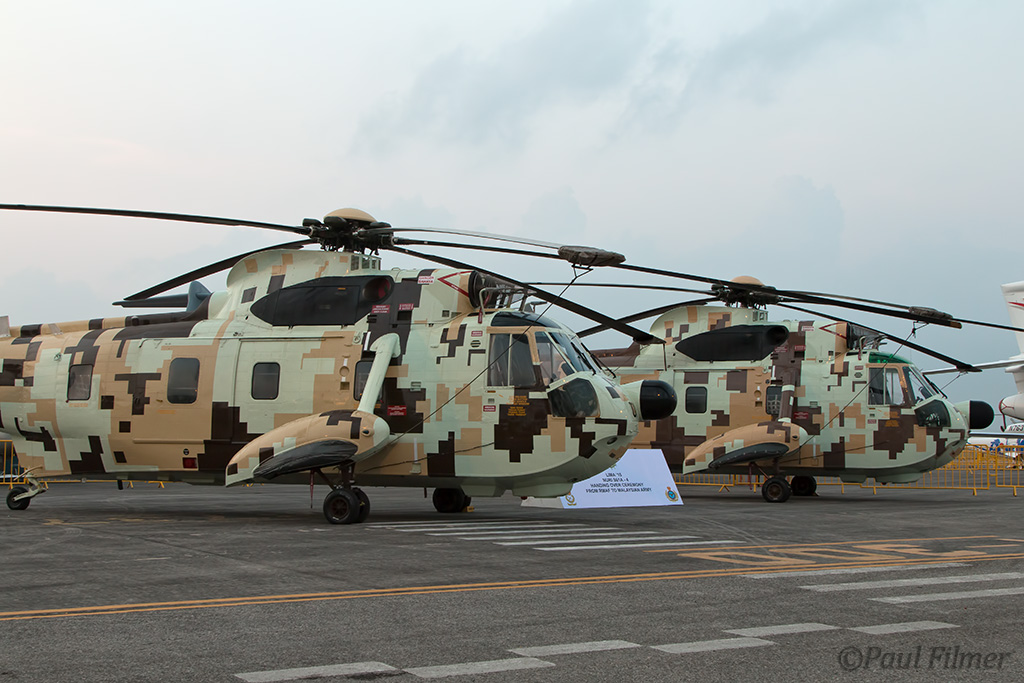 We spied an unusual looking S-61A Nuri on the ramp, and after further investigation it transpired that this was one of two newly prepared ex-RMAF machines to be handed over to the Royal Malaysian Army. A further ten will follow on, and presumably all will be painted in this attractive digital camo scheme.