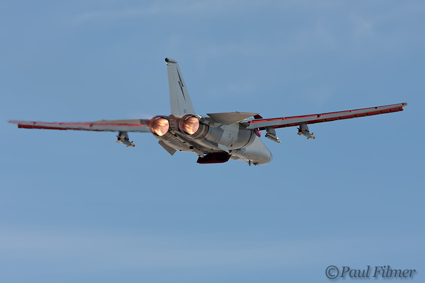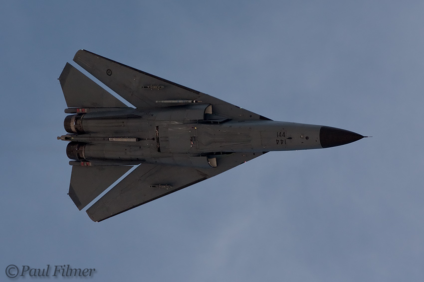The second attempt found all aircraft bar one flying on our backlit side. It was interesting all the same to see them flying with their Pave Tacks hanging down.
