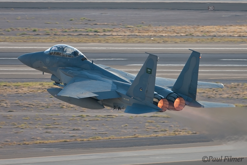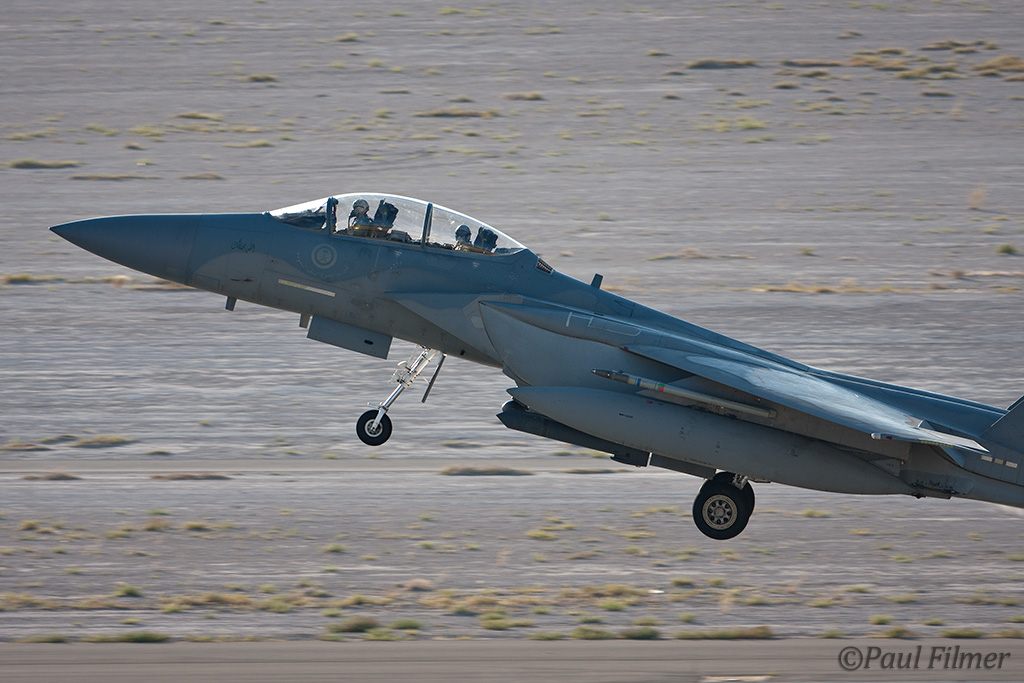 The next morning we were between the runways with nowhere to hide from the relentless sun except for the thin lines of shade next to the bus and the small tower. The other exotic players were the Royal Saudi Air Force with F-15S aircraft who last came to Red Flag for RF08-2.2 back in February 2008.