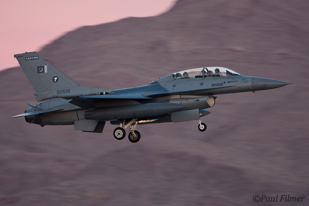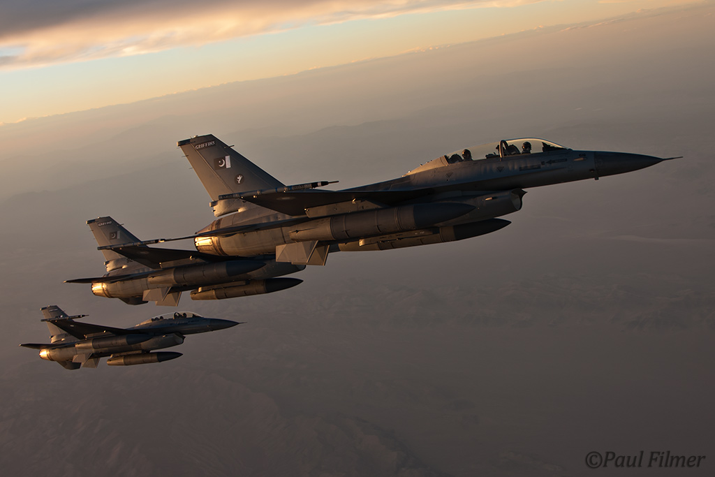 The stars of this Flag were undoubtedly the Pakistan Air Force with their F-16Bs. This is the first time they have participated in a Red Flag exercise and they bought six jets and around 100 ground support personnel. They flew to Nellis AFB via Lajes Field AFB in the Azores and were hosted on the stopover by the 65th Operations Support Squadron. This was the first time the Pakistan Air Force have ever used this base as transit point. All the pilots were well trained in advance for the long transatlantic crossing that was seen as a symbolic leg for this huge undertaking.