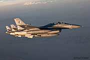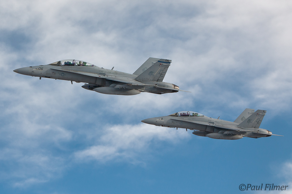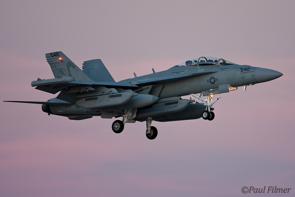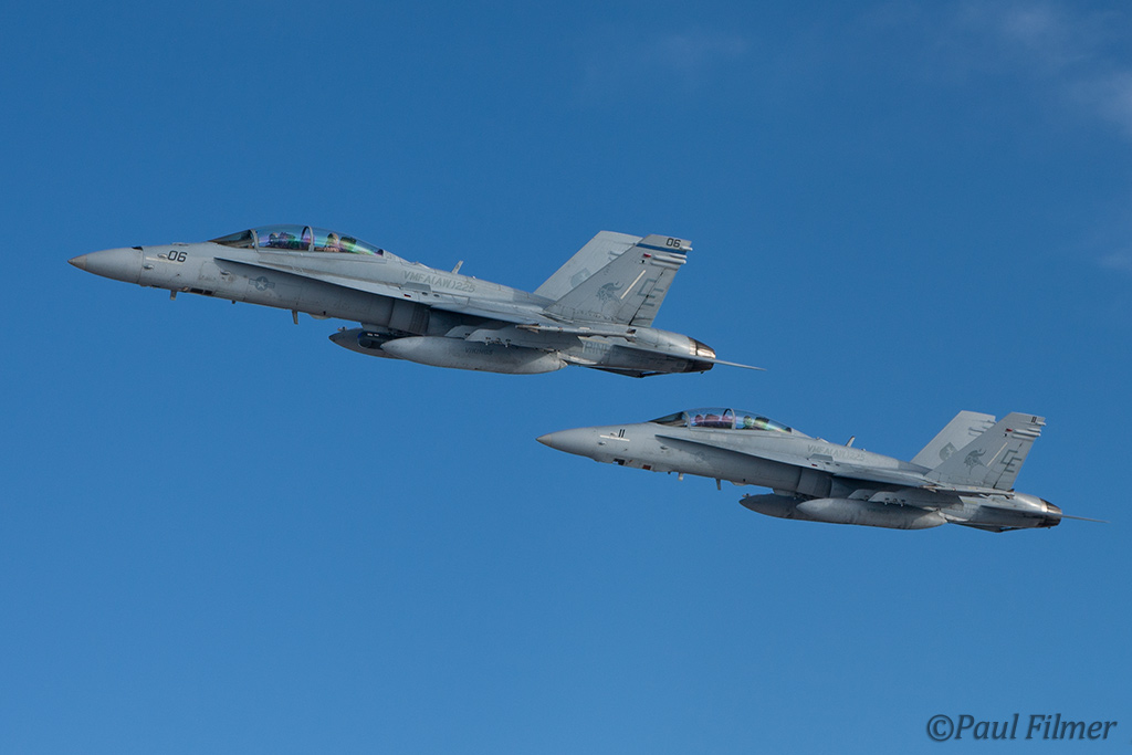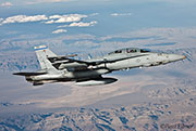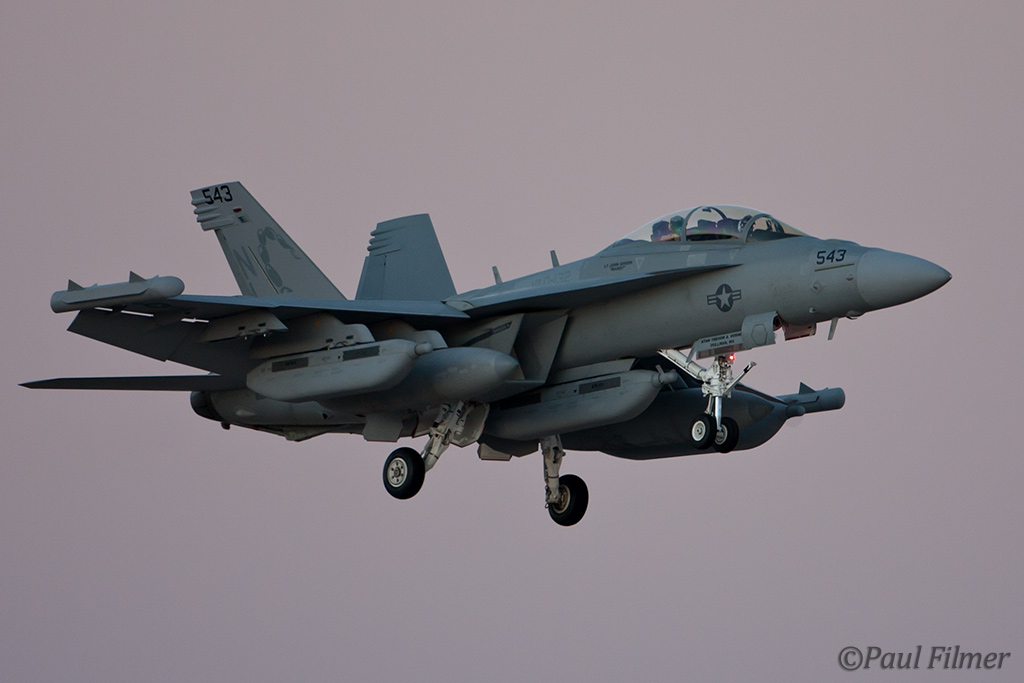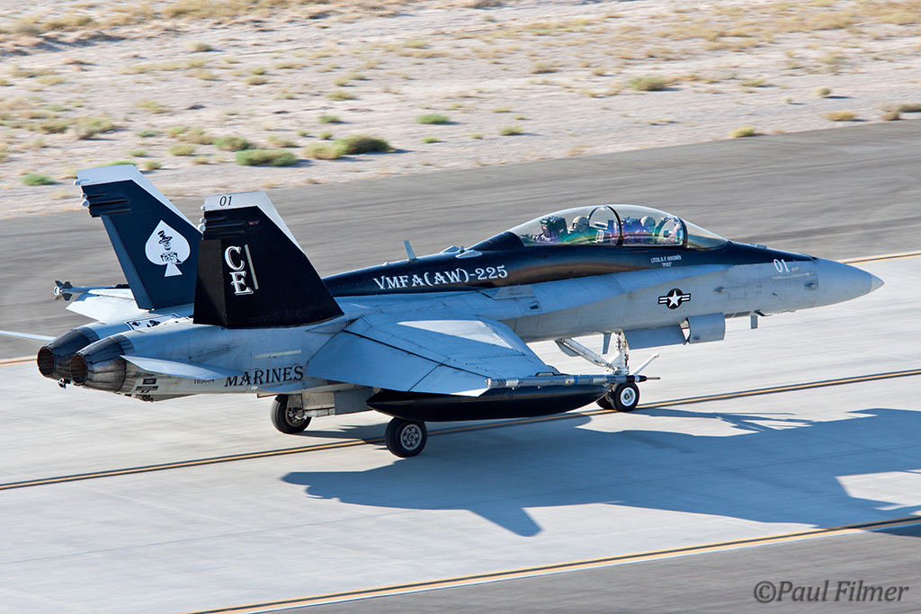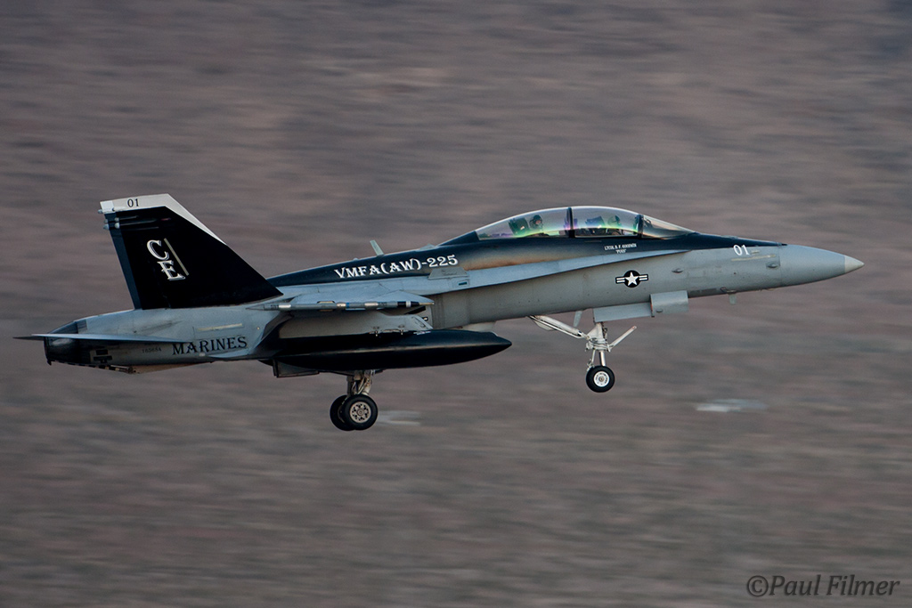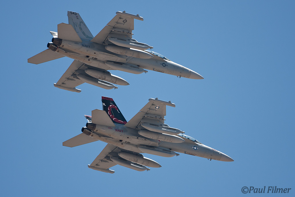 The other players for RF10-4 were in the SEAD (Suppression of Enemy Air Defence) role with the traditional EA-6Bs this time from VMAQ-3 at MCAS Cherry Point alongside the new EA-18Gs from VAQ-132 at NAS Whidbey Island, WA and these aircraft often returned in the break together in a dissimilar formation. Also in this role were the 77FS F-16CMs from Shaw AFB who seem to permanently deployed to Nellis these days, although the strange photo restrictions that we have had to live with for the past year were suddenly lifted as the exercise began.