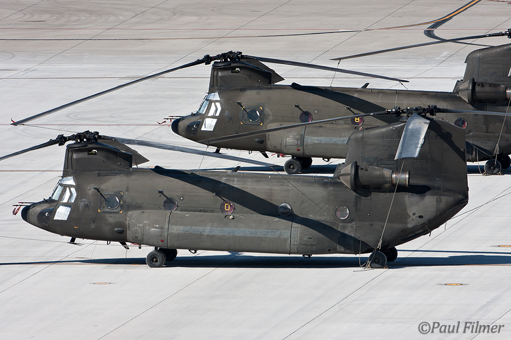 We spied the four Royal Singapore Air Force H-47s parked on the eastern ramp and took a punt at guessing that their departure would be via the north east of the field, so took a drive north almost to the freeway to hang out at one of the highest points in the area in case they decided to fly by at a low altitude. Unfortunately they decided to stay stubbornly on the ground, so, due to the heat, went shopping for better hats to combat the relentless sun. The afternoon as expected turned out to provide better shooting opportunities and I managed to secure some nice low light recoveries against the mountains that more than made up for the bad morning light.