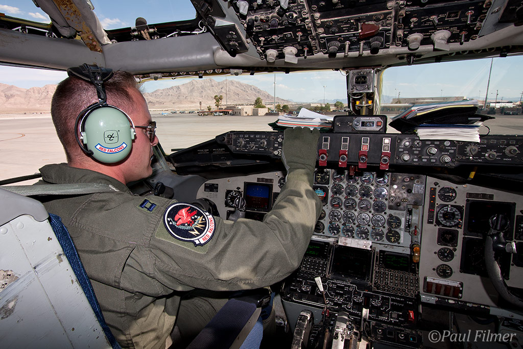 We met our flight crew in the Operations building and were invited to attend their pre-flight brief. They showed us on the map that our tanker holding track would skirt really close to the Groom Lake restricted zone. They told us that if they so much as clip that area they would be grounded for the rest of the exercise. There was confusion at first as their commander had advised them that we would be there to take photos of the crew. They made a phone call to the boss to relay the fact that we were here to take photos of the aircraft that they would be re-fueling, but were then advised that we couldn't take photos of any foreign aircraft. Luckily at this point our main PAO contact arrived back in Base Ops and sorted out that in fact there were no restrictions on what we could shoot, and in fact the Pakistan Air Force had explicitly asked to be shot. Phew!