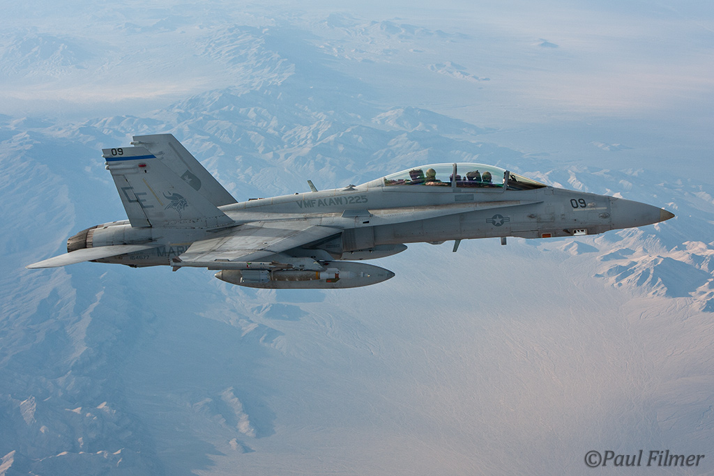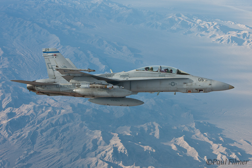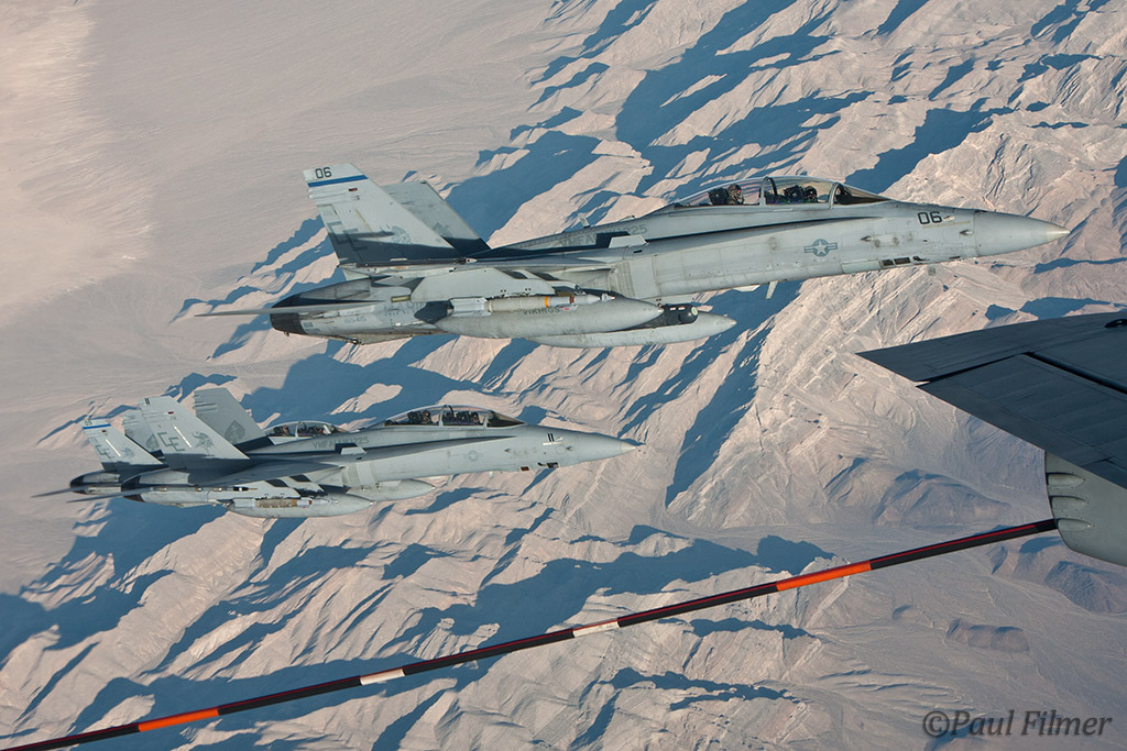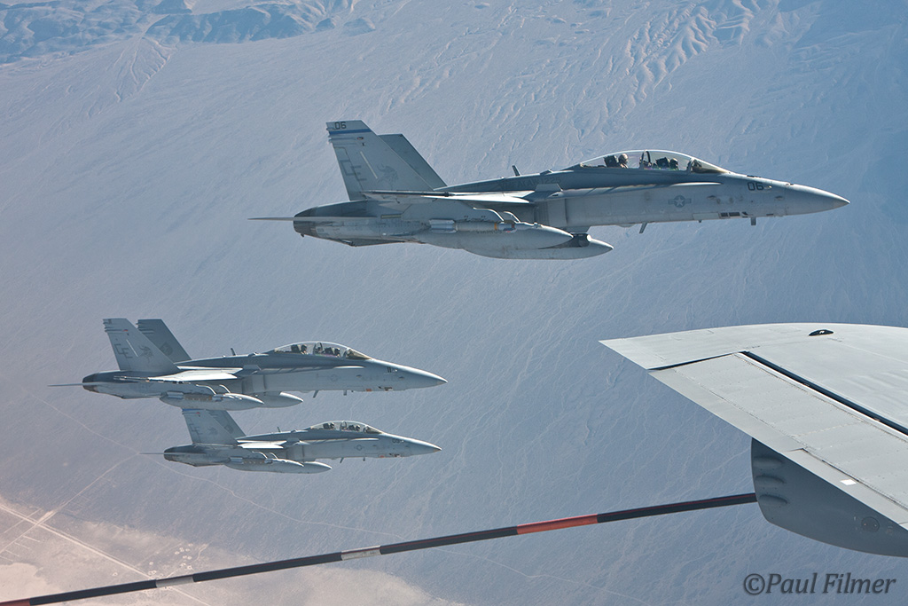 In the afternoon I had a tanker flight arranged and the schedule showed that we should be receiving Pakistan Air Force F-16s, Royal Saudi Air Force F-15s, US Navy EA-18G Growlers and US Marine Corps F/A-18s; this would be a real quality haul! I reported back to the main gate at 14:30 for my 17:30 flight, and with me would be a Boeing video guy who was here to shoot the Saudis, a PAO photographer from the US Navy for the Growlers, and our PAO escort who was actually from Shaw but on temporary assignment to the Nellis PAO office for this Flag.