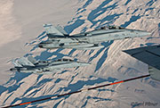 I went back to the boomers position to shoot number two as he was fueling and also caught number three as he positioned for the boom. Then it was back ton the cockpit to catch them in formation on the starboard wing. When they were finished our pilot asked if I wanted them to ask the Pakistanis to do anything. I replied that if they could move forward again just as they had done on the port side that would be perfect, if of course they had the time to spend before their next part of the mission. They did this in glorious sunset light, both backlit with the red sky and after the turn with the light shining perfectly on the airframes. Perfect!
