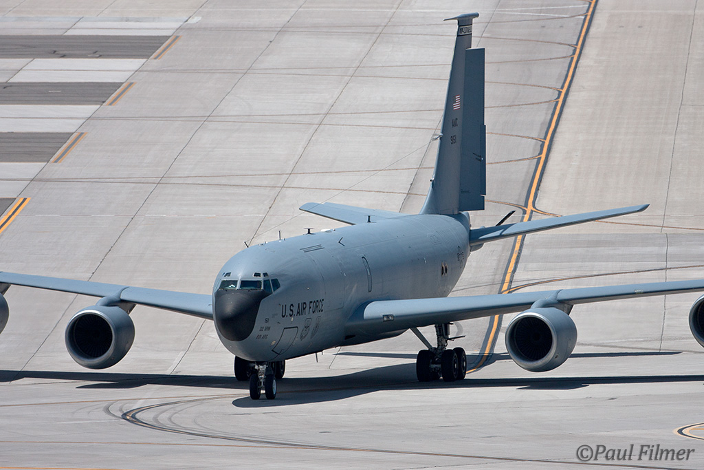 Our flight crew was Instructor Pilot Capt. Nicholas "KOKO" Motlagh, Pilot 1st Lt. Mattew "Rook" Douglass and Instructor Boom Operator Staff Sgt. Logan "Crunch" Berry. This flight was in fact Lt. Douglass' first ever KC-135 mission and he performed the take-off on 21L with the required right turnout to avoid the city. The aircraft was stifling hot on the ground even with the cargo door and over-wing exits open to allow the breeze to circulate, but as we climbed the temperature began to slowly drop until 30 minutes later when the temperature was nigh on perfect.