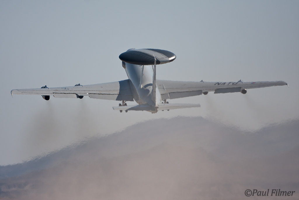The next morning after breakfast the usual suspects and myself decided to check out the 10:00 northerly launch from the Las Vegas Motor Speedway. This always proves very difficult as the aircraft can be high but are also backlit; a photographers dream. I probably shot only the E-3 and a couple of F-16s who were given a Flex turnout, but this is to be expected in these very difficult shooting conditions. When they depart to the north the morning is effectively a scrub.