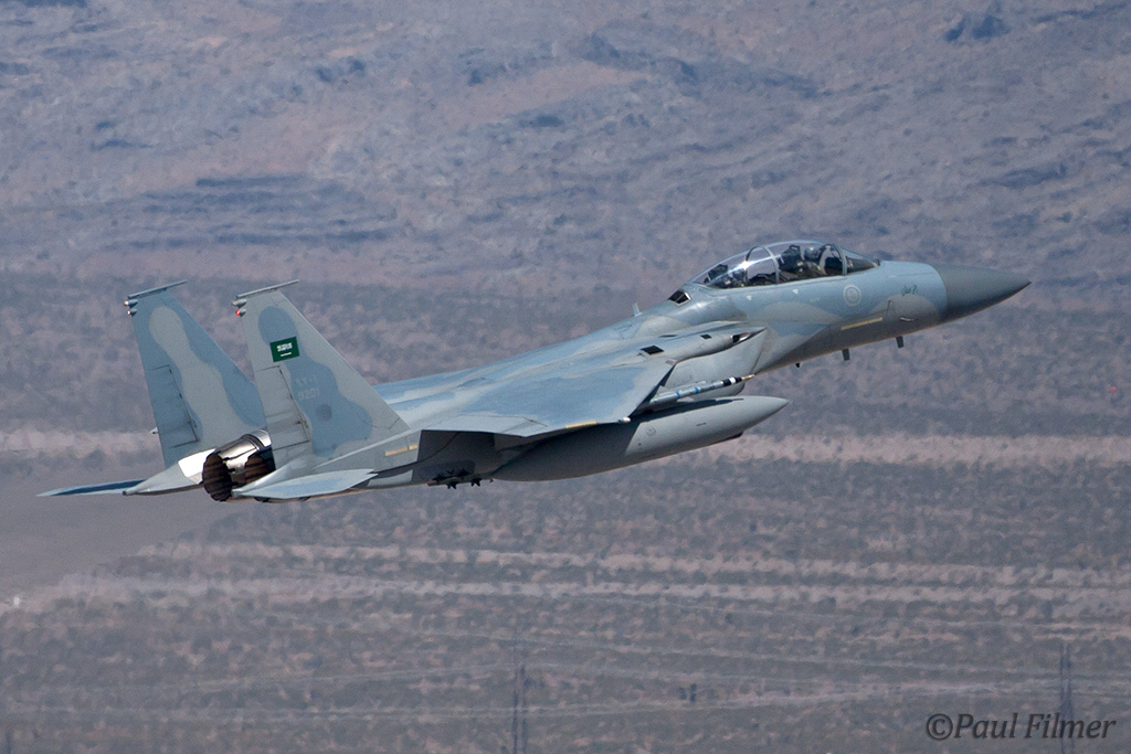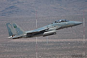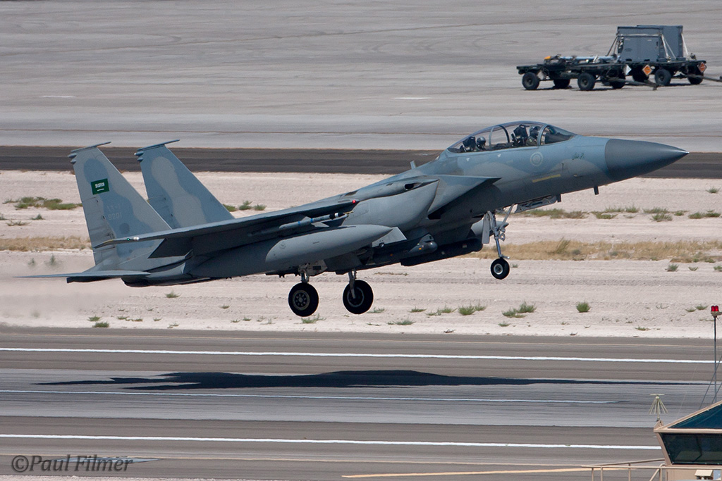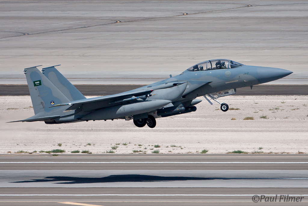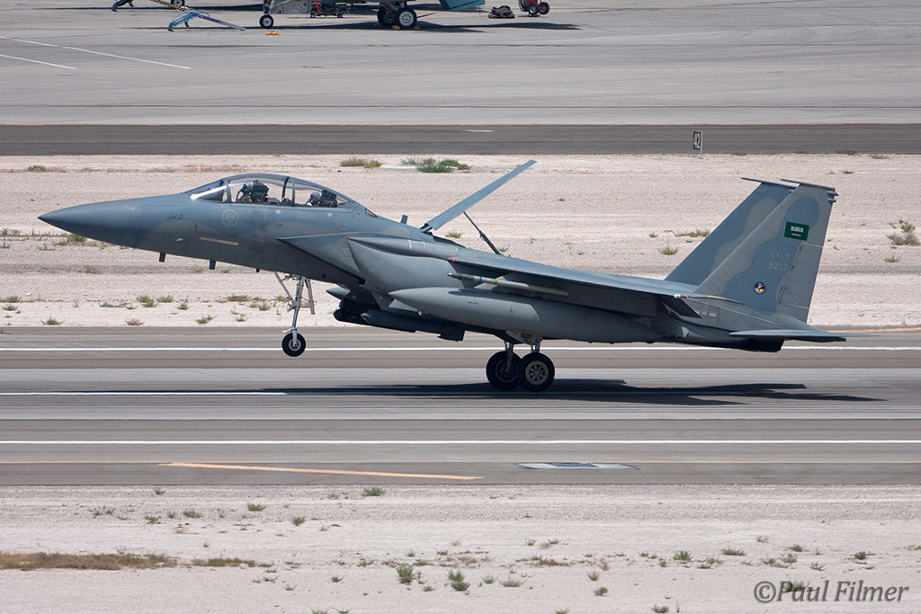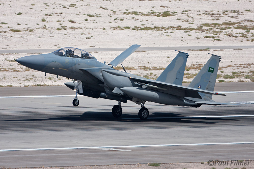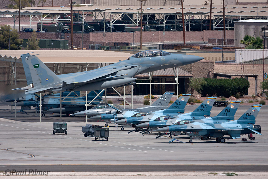 The next morning we were between the runways with nowhere to hide from the relentless sun except for the thin lines of shade next to the bus and the small tower. The other exotic players were the Royal Saudi Air Force with F-15S aircraft who last came to Red Flag for RF08-2.2 back in February 2008.