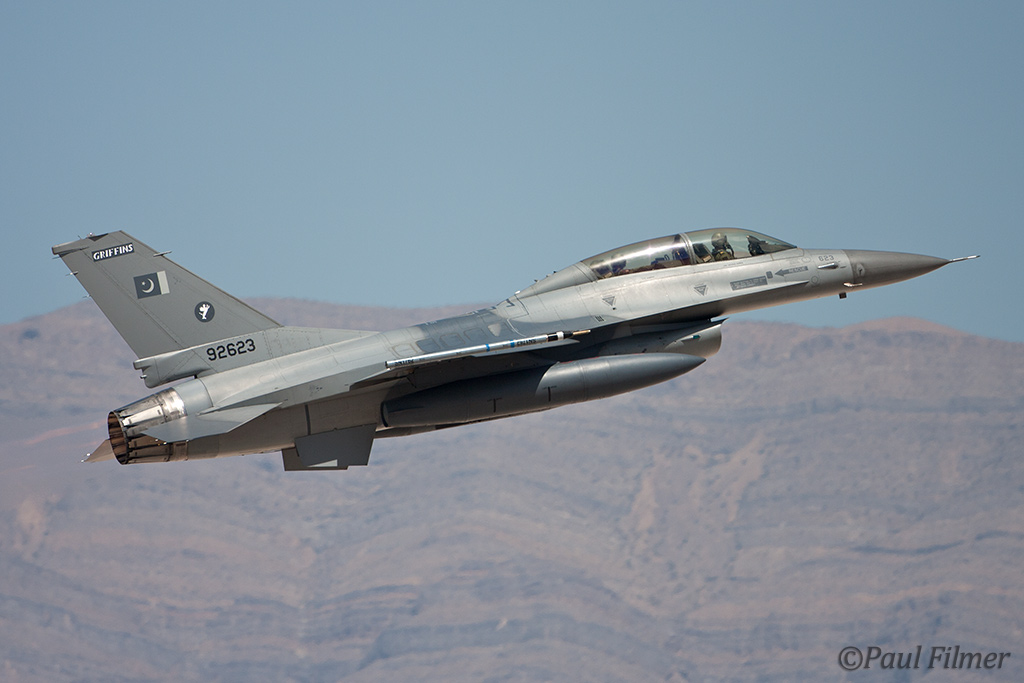 The stars of this Flag were undoubtedly the Pakistan Air Force with their F-16Bs. This is the first time they have participated in a Red Flag exercise and they bought six jets and around 100 ground support personnel. They flew to Nellis AFB via Lajes Field AFB in the Azores and were hosted on the stopover by the 65th Operations Support Squadron. This was the first time the Pakistan Air Force have ever used this base as transit point. All the pilots were well trained in advance for the long transatlantic crossing that was seen as a symbolic leg for this huge undertaking.
