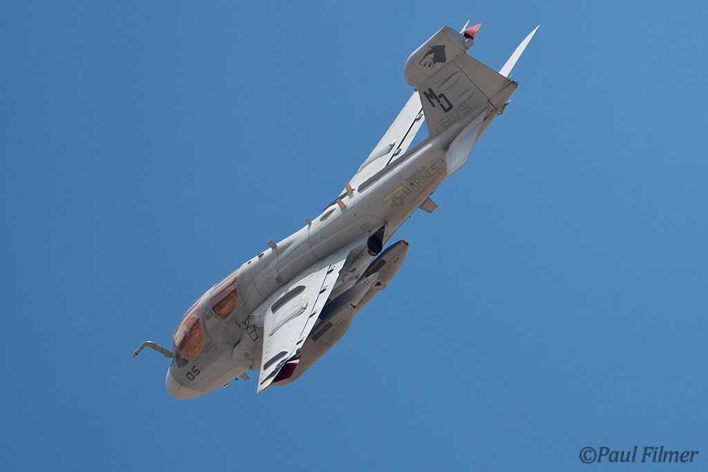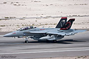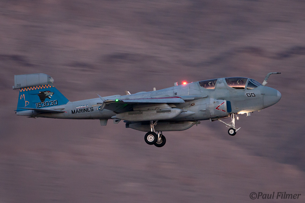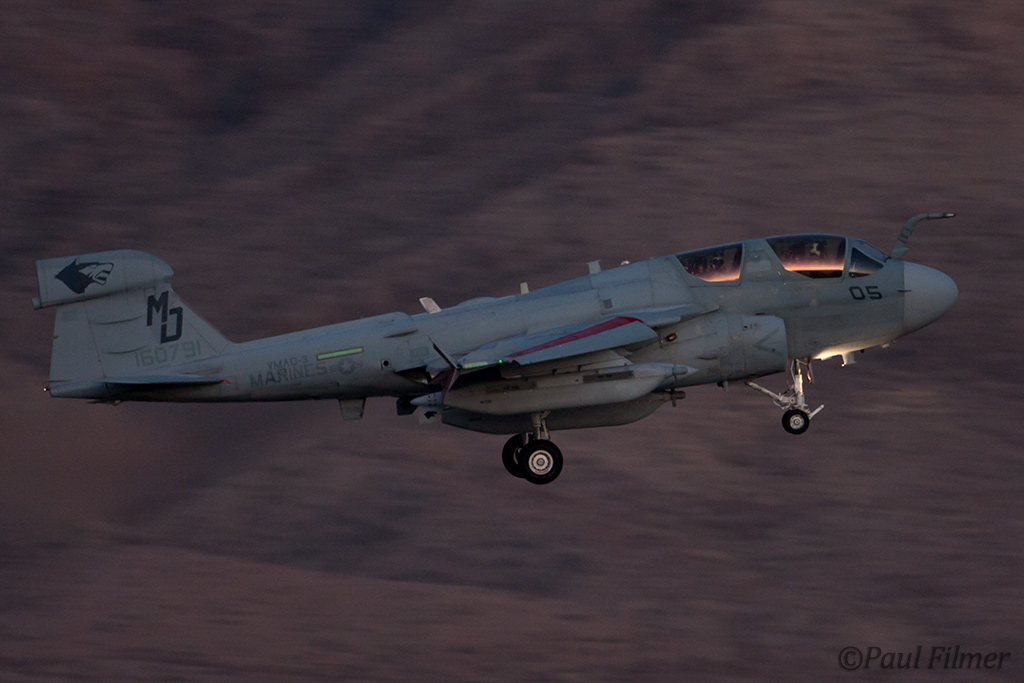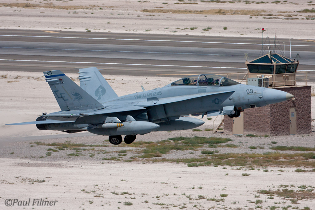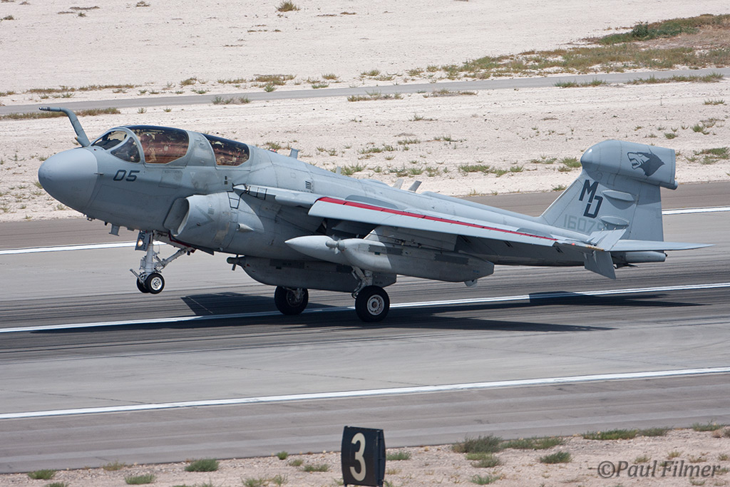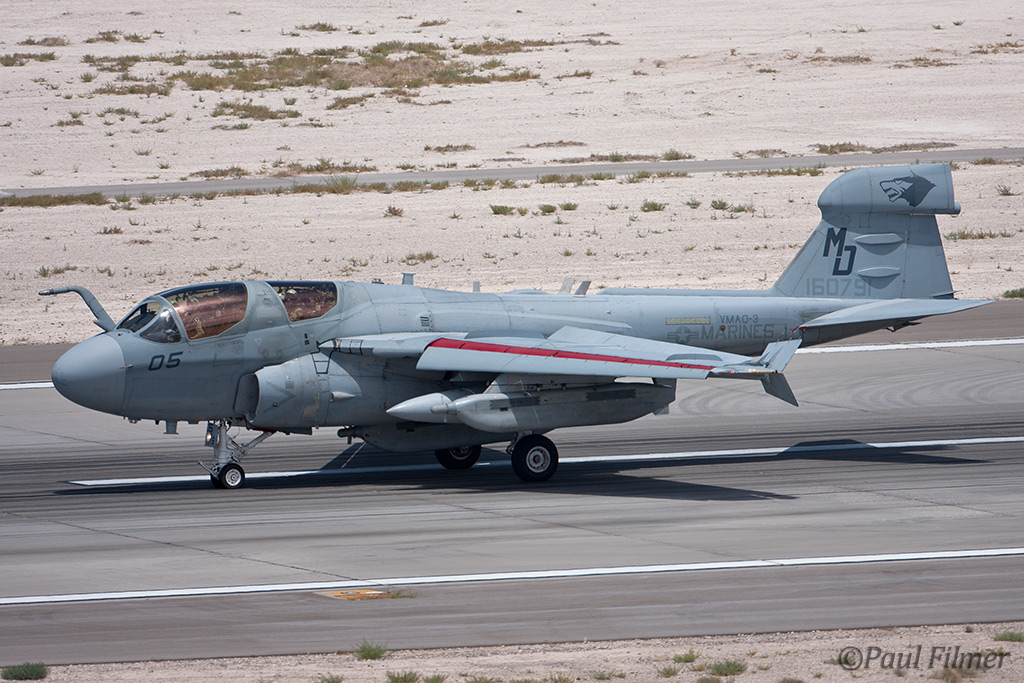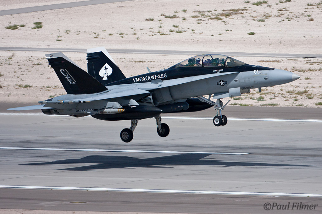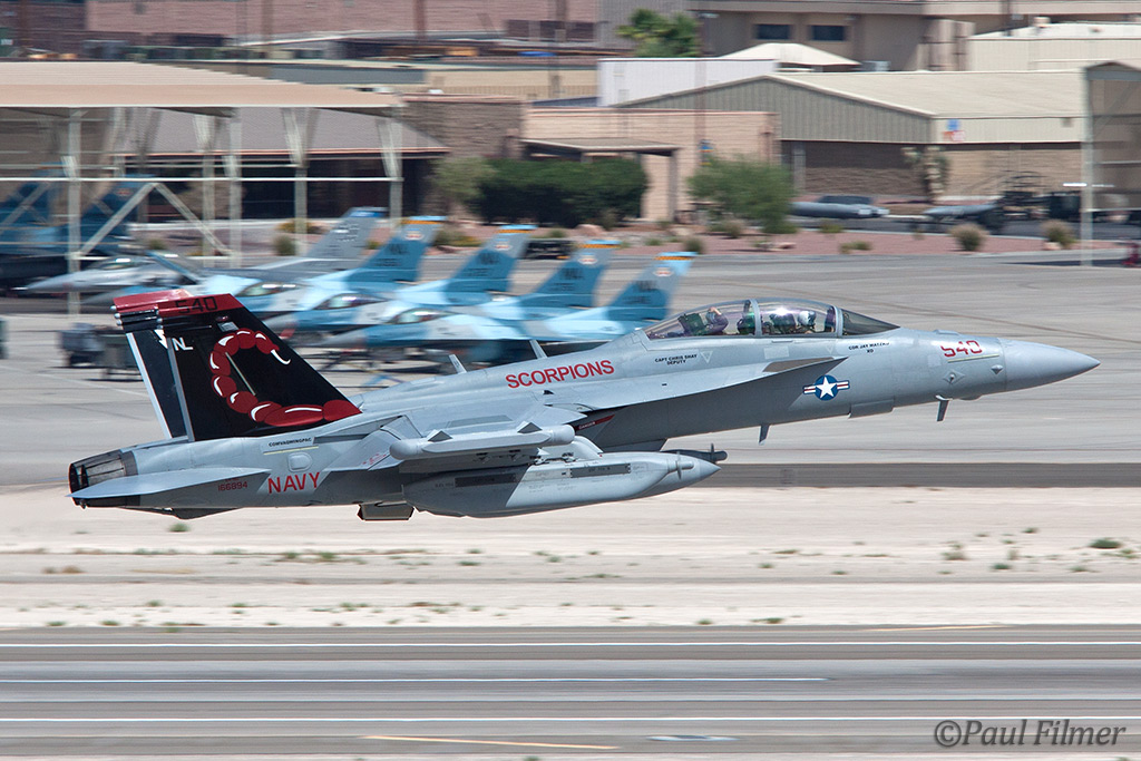 The other players for RF10-4 were in the SEAD (Suppression of Enemy Air Defence) role with the traditional EA-6Bs this time from VMAQ-3 at MCAS Cherry Point alongside the new EA-18Gs from VAQ-132 at NAS Whidbey Island, WA and these aircraft often returned in the break together in a dissimilar formation. Also in this role were the 77FS F-16CMs from Shaw AFB who seem to permanently deployed to Nellis these days, although the strange photo restrictions that we have had to live with for the past year were suddenly lifted as the exercise began.