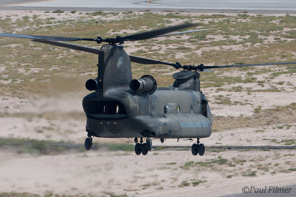 We spied the four Royal Singapore Air Force H-47s parked on the eastern ramp and took a punt at guessing that their departure would be via the north east of the field, so took a drive north almost to the freeway to hang out at one of the highest points in the area in case they decided to fly by at a low altitude. Unfortunately they decided to stay stubbornly on the ground, so, due to the heat, went shopping for better hats to combat the relentless sun. The afternoon as expected turned out to provide better shooting opportunities and I managed to secure some nice low light recoveries against the mountains that more than made up for the bad morning light.