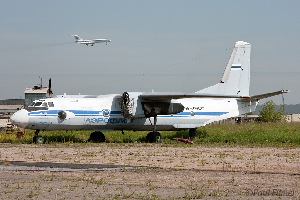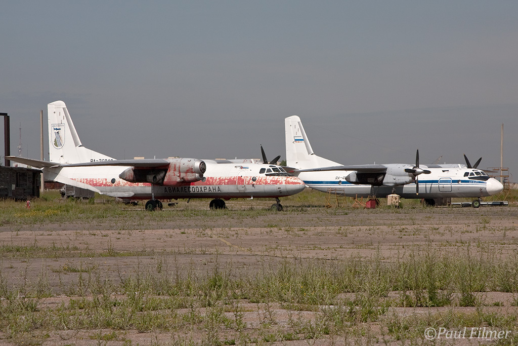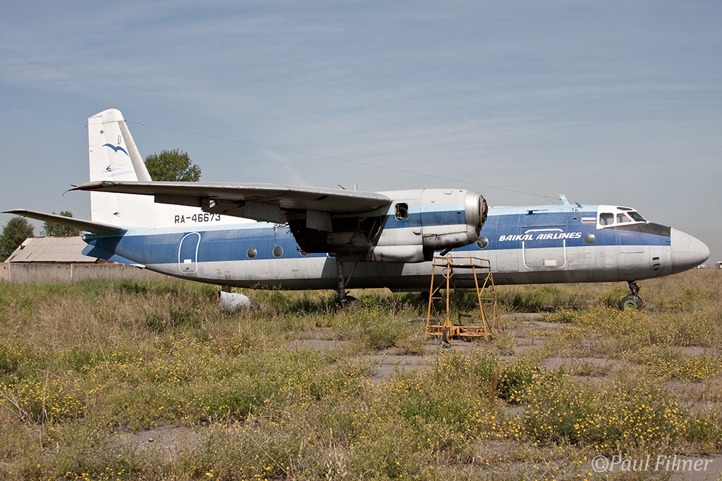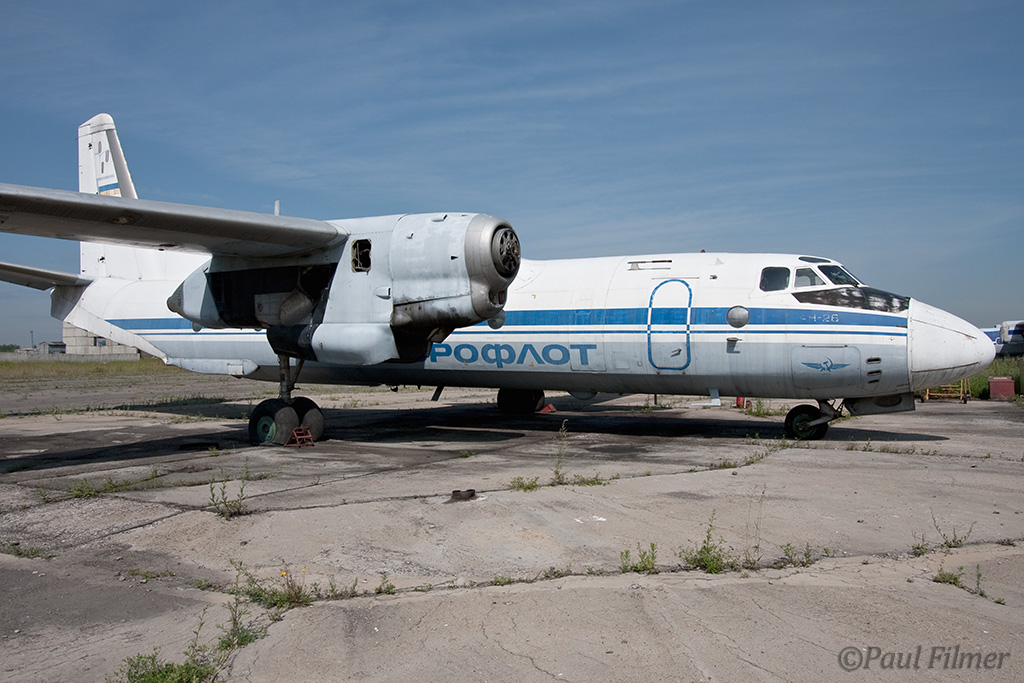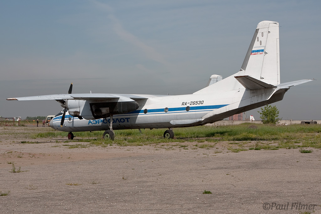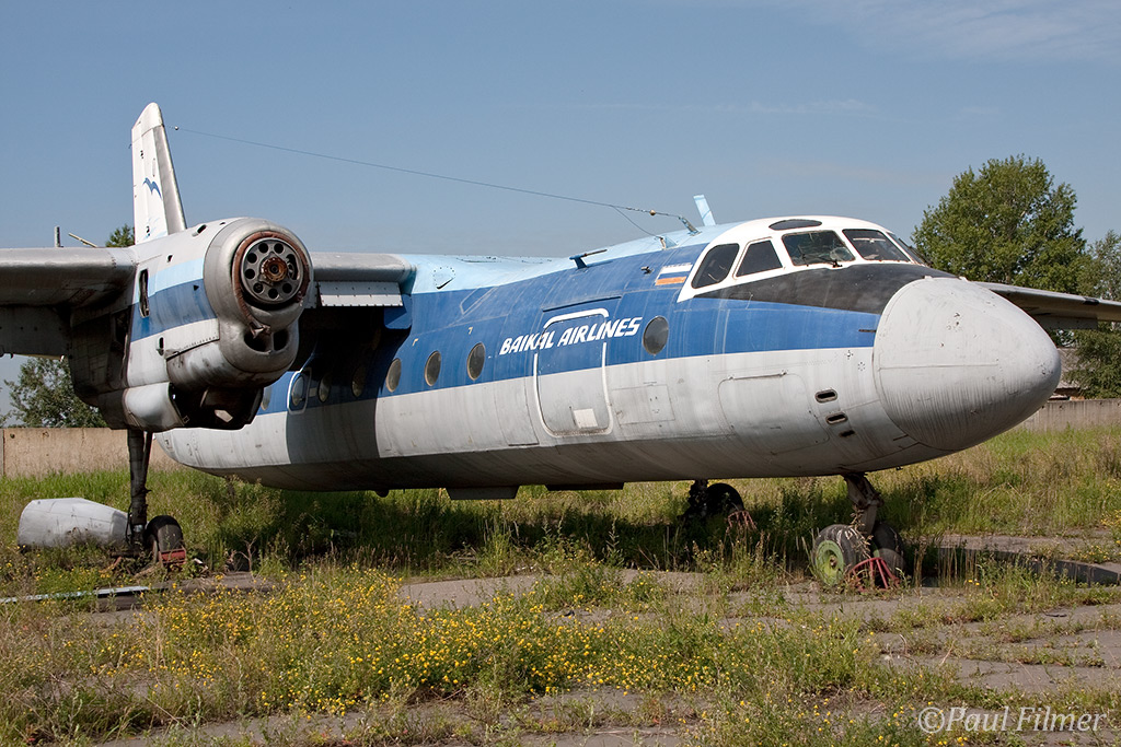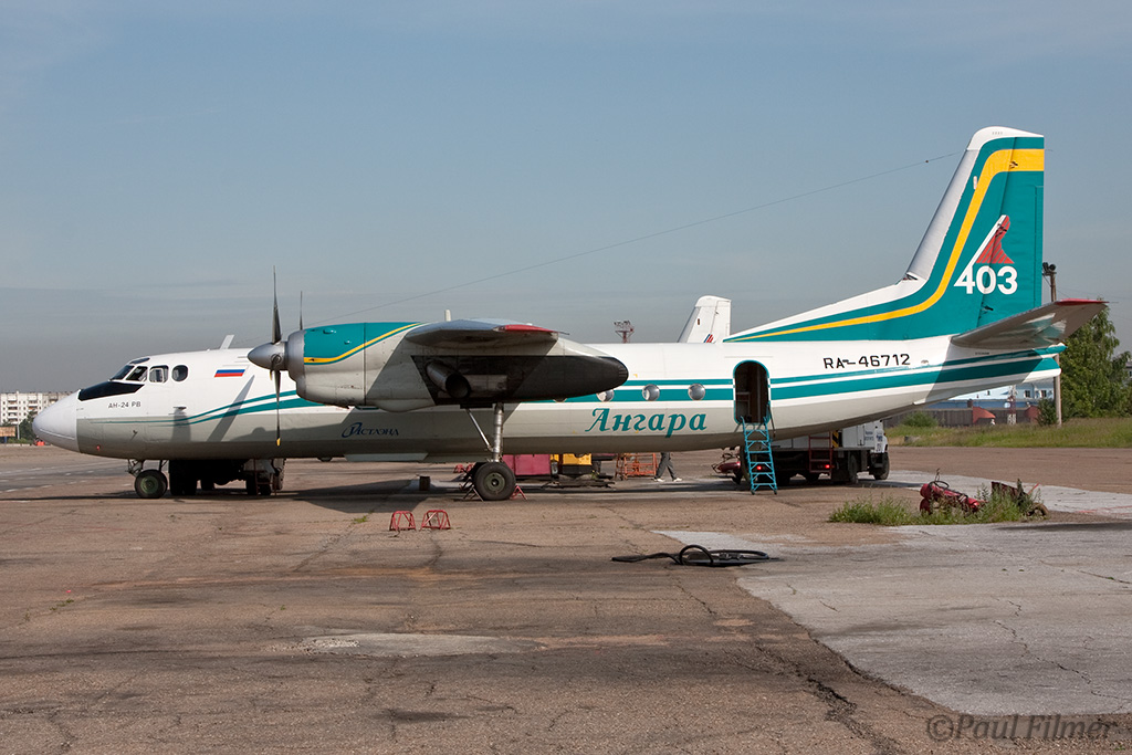 Irkutsk Airport is laid out very strangely. The main ramp outside the terminal was only being used by Russian jet equipment and a couple of Airbus' were parked on a remote ramp towards the runway. The An-24/An-26 ramp is up a hill even further from the terminal next to the rework facility, and there is also a military ramp at the other end of the airfield.