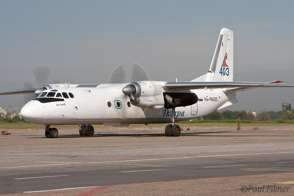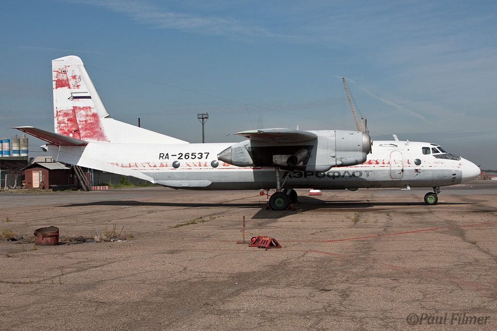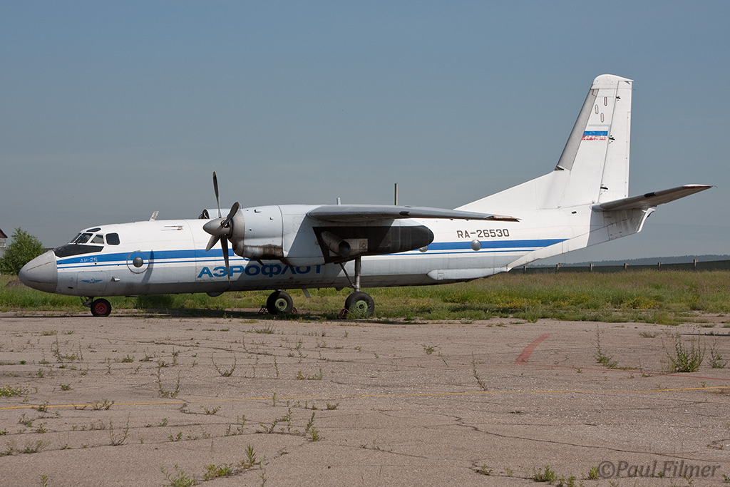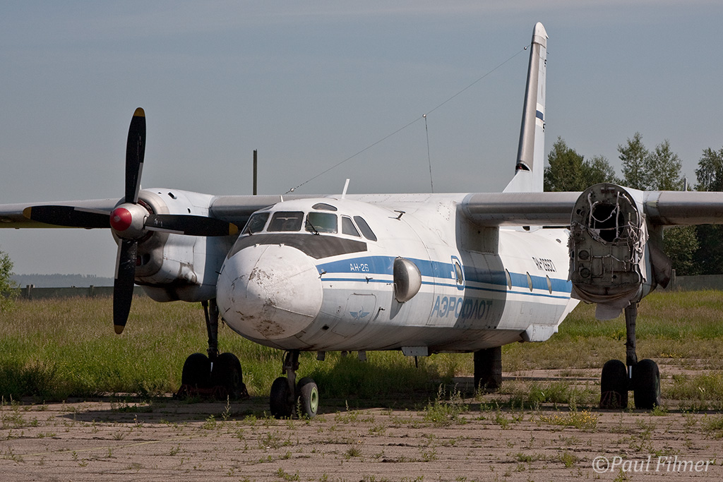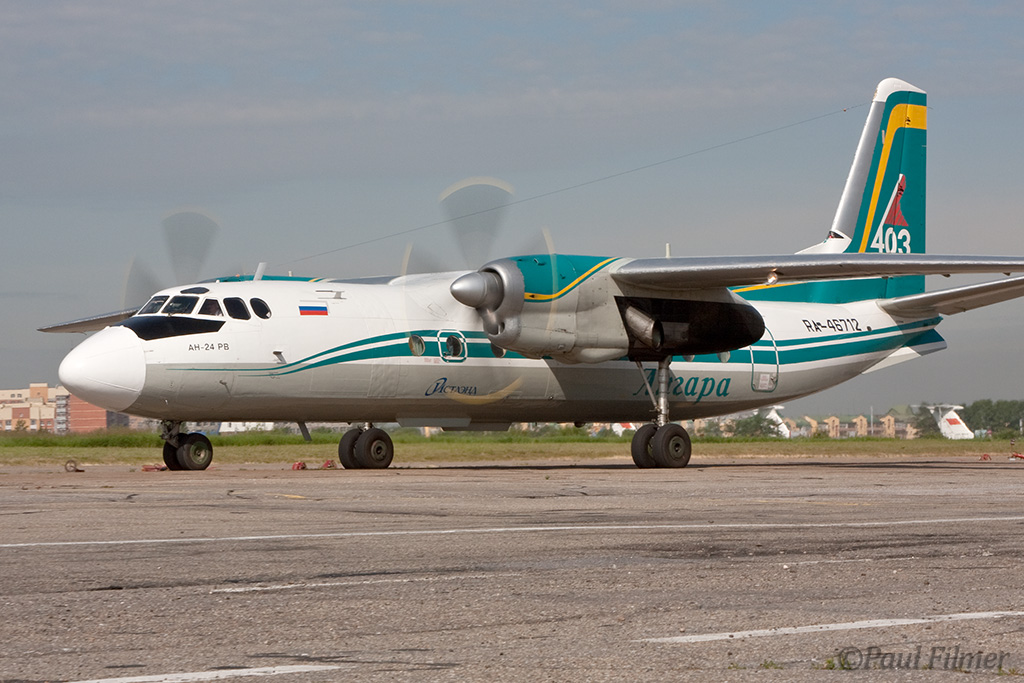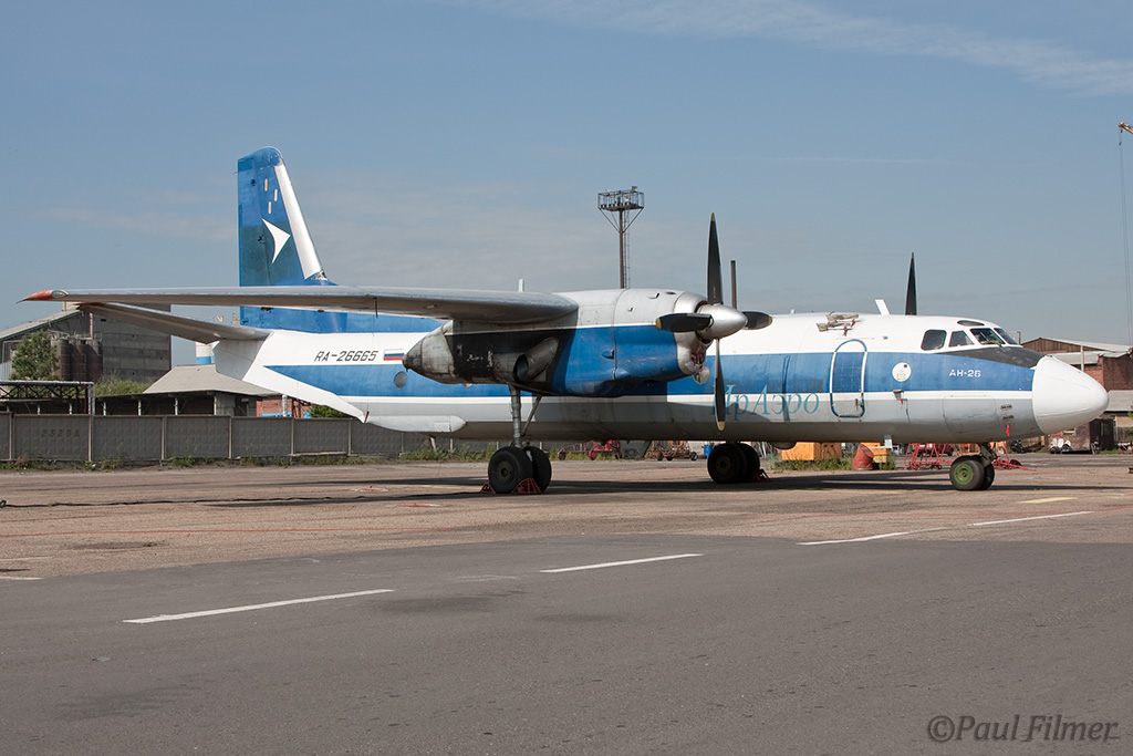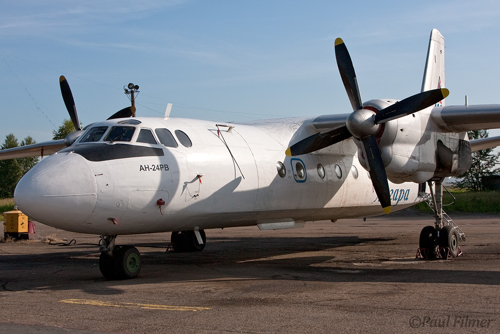 Irkutsk Airport is laid out very strangely. The main ramp outside the terminal was only being used by Russian jet equipment and a couple of Airbus' were parked on a remote ramp towards the runway. The An-24/An-26 ramp is up a hill even further from the terminal next to the rework facility, and there is also a military ramp at the other end of the airfield.