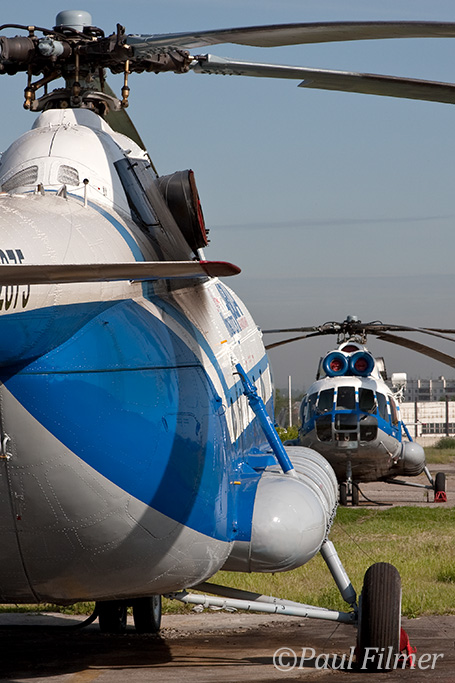 Again we need to walk only a short distance to our hotel, although this time it proves a little tricky across a very busy fast road with no pavements. We have a little time before we are due to go back for our tour and Steve remembers that there is an An-24 mounted on a roundabout somewhere close. We go for a walkabout but the old ARP403 Rework Factory is now closed and we can't even find any roundabouts - maybe it's been taken away and scrapped? We decide to continue our wander to peek over the wall at the nearby Military Technical School, where I feel like a spy shooting candid photos of Il-76s and Tu-22s. [photos]