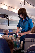 It's finally time to go to the departure lounge, which really means we walk from the spacious terminal into a much smaller room where there are not enough seats. Our bus arrives at last to take us to the aircraft. Well bus is stretching the description, as our transport is a pair of very old tram like carriages pulled by a tractor! Anyway as everyone barges through to be first to board this contraption, the wise amongst us knows the age old adage "last on first off" as most of us want a window seat and the flight is a free for all.