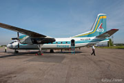 Again we drag our western wheeled baggage through the dusty and cobbled streets to the airport. If we didn't attract attention on the way in the day before, we certainly did at this ungodly hour. We still can't see our mount, as the ramp outside the terminal is empty, so our aircraft must be parked in the gaggle of An-24s and An-26s we wandered around yesterday.