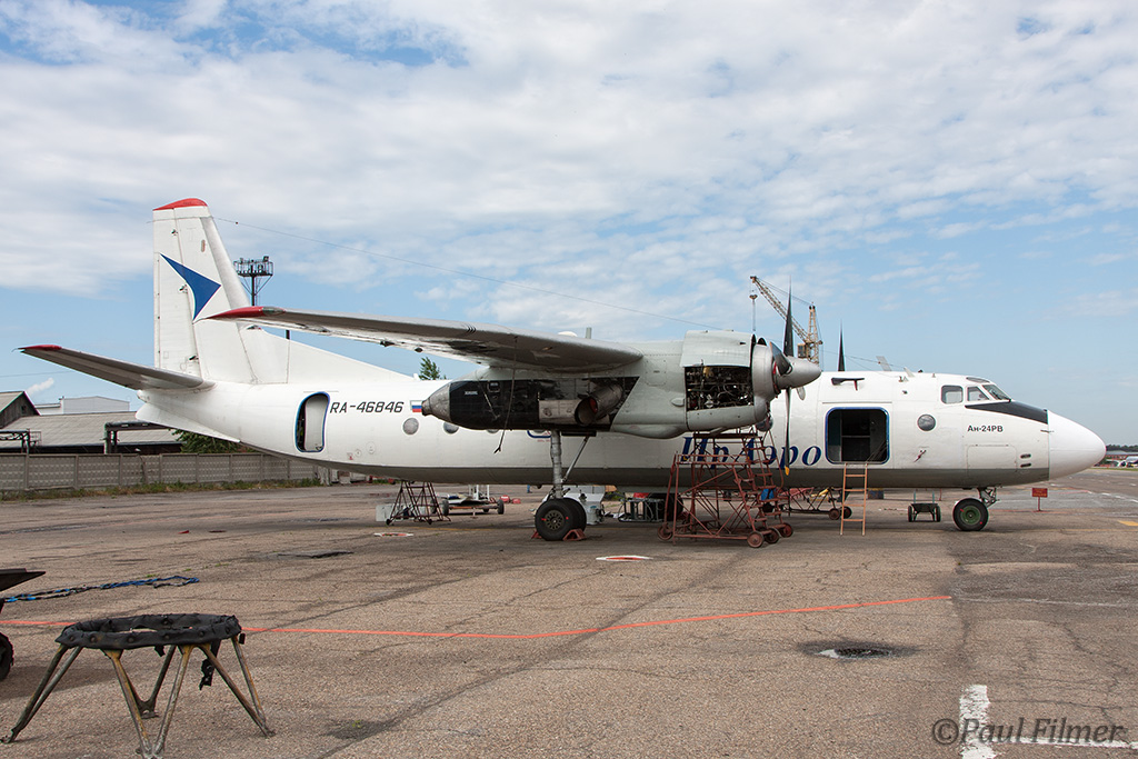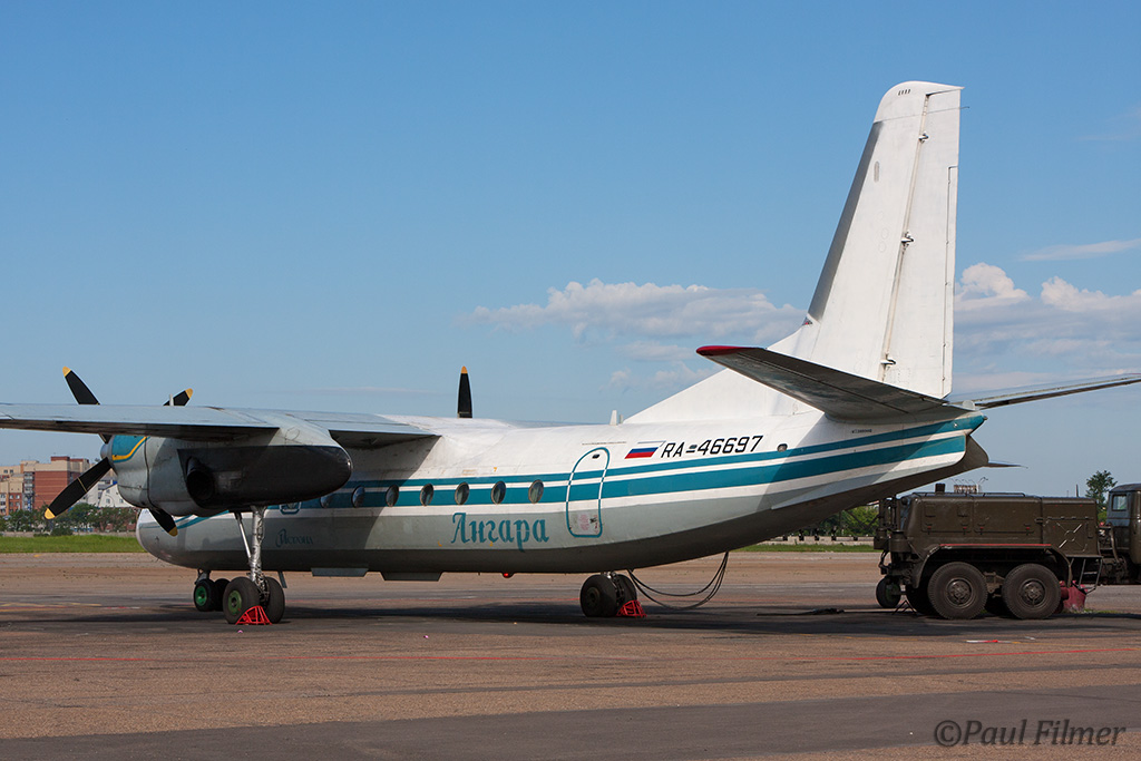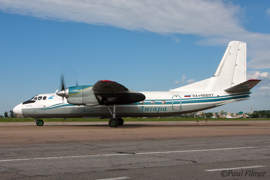 There were a mix of An-24 and AN-26s belonging to Angara, some of the aircraft were in this old scheme, minus the 403, and others were in plainer white colours.