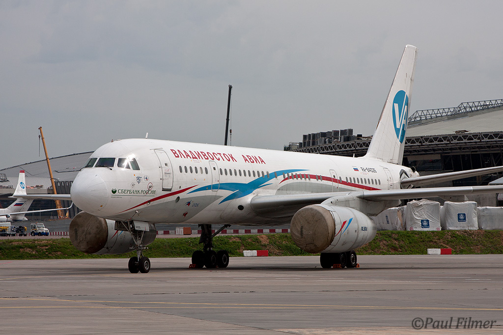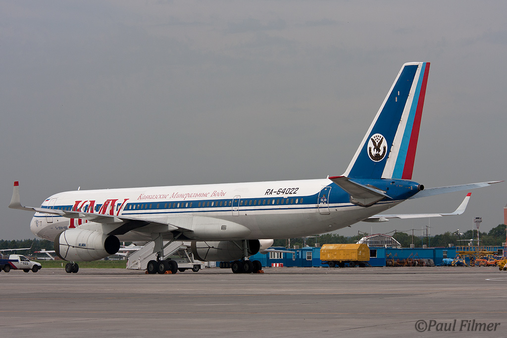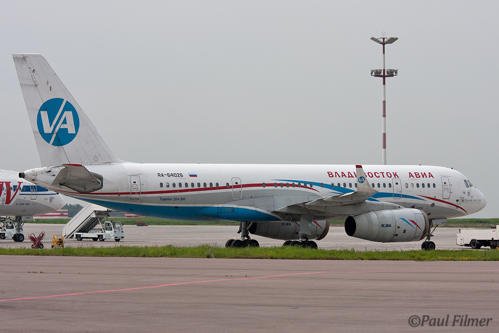 Another type not seen too often is the Tu-204 and here we found two of them. RA-64026 belonging to Vladivostok Avia was the first production Tu-204-300 and RA-64022 with is a Tu-204-100 operated by KavMinVody Avia usually shortened to KMV. The 300 series is six meters shorter than the 100 version but has a longer range and is more efficient. Vladivostok Avia was the launch customer for this variant and currently operate six of this type, with the only other operator being Air Koryo based in North Korea who operate a single example.