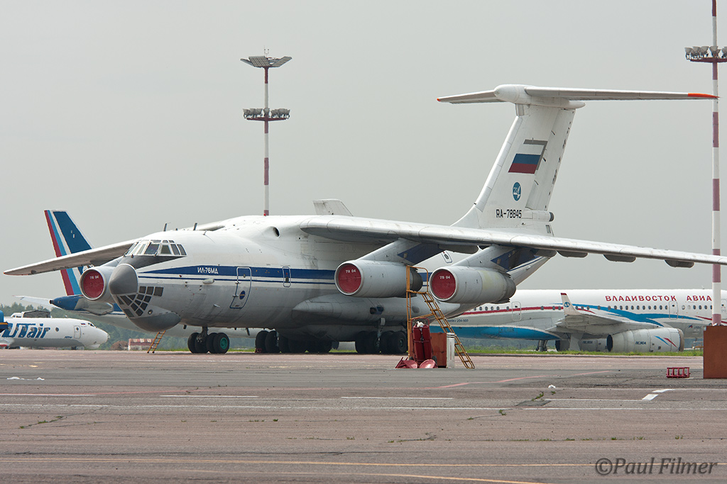 But all is not bad at Vnukovo as there are still plenty of other classic airliners to be found. The biz-jet ramp was full of Tu-134s and Yak-40s and it seems like the Tu-134 has really found a new life as an executive transport, which is nice to see. All those that we saw were immaculate, but unfortunately we have never been allowed to roam that ramp. One of the more interesting aircraft on the terminal ramp was a Russian Air Force Il-76MD that blended in very well amounts the civilian aircraft all around. It carried a 224 LO VTA (224th Transport Aviation) badge on the tail and was fitted with the ball turret in the rear, although minus the twin guns. This aircraft is based at the large Tver base to the north-west of Moscow where the remaining An-22s are also housed.