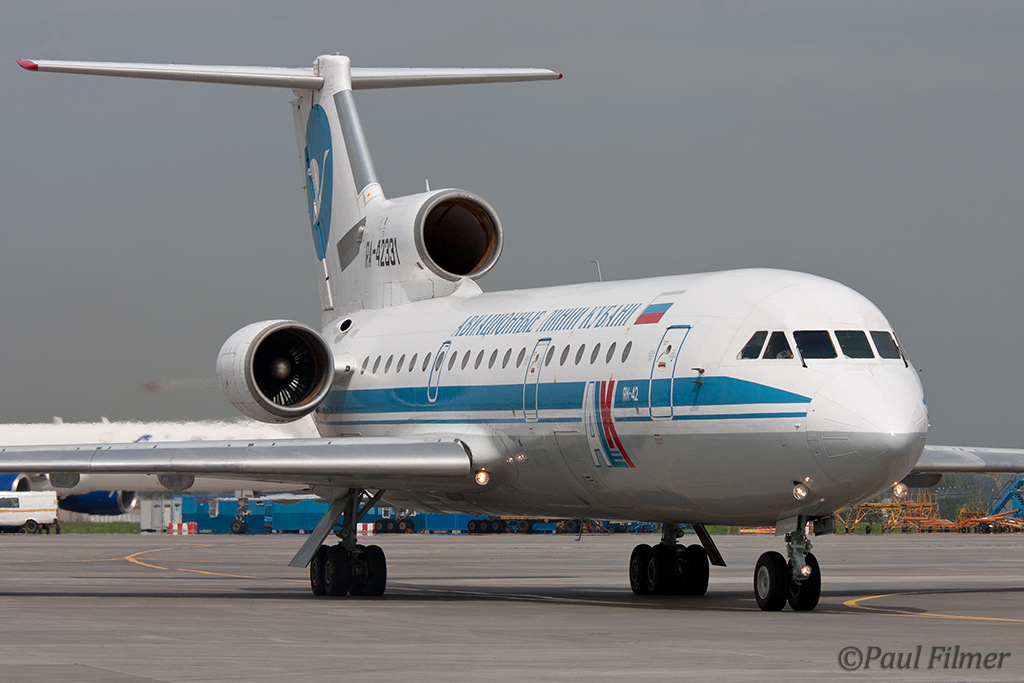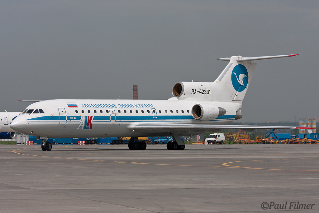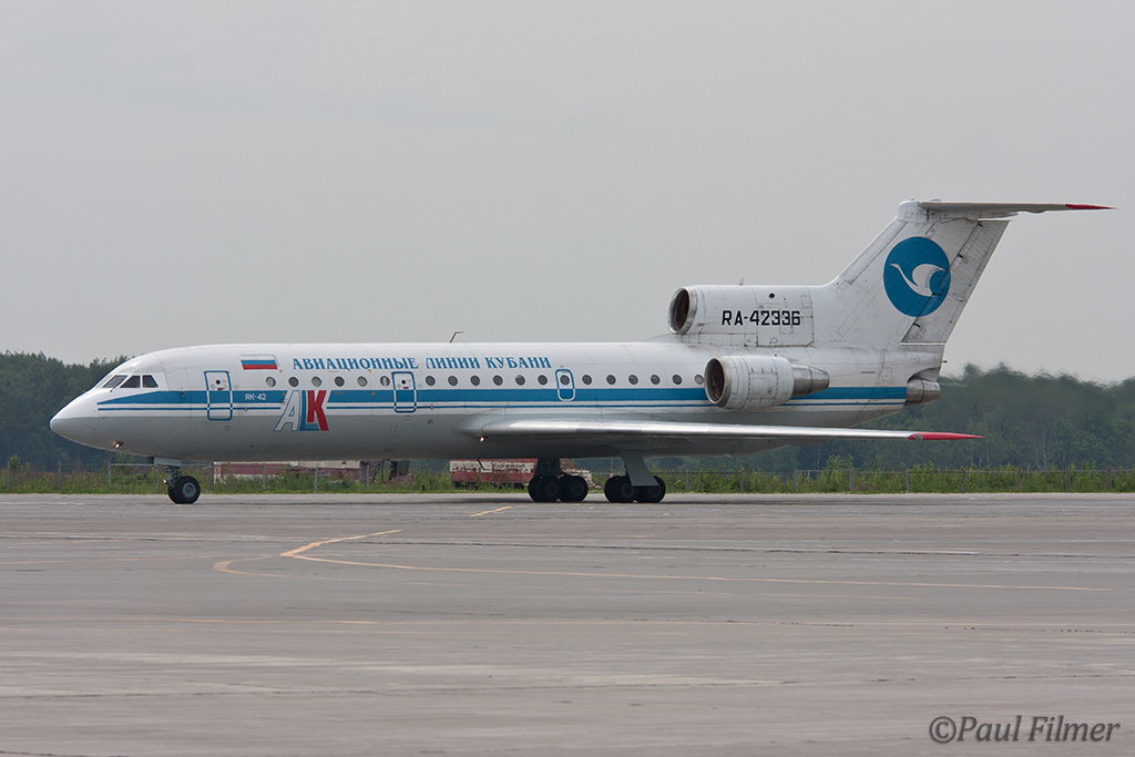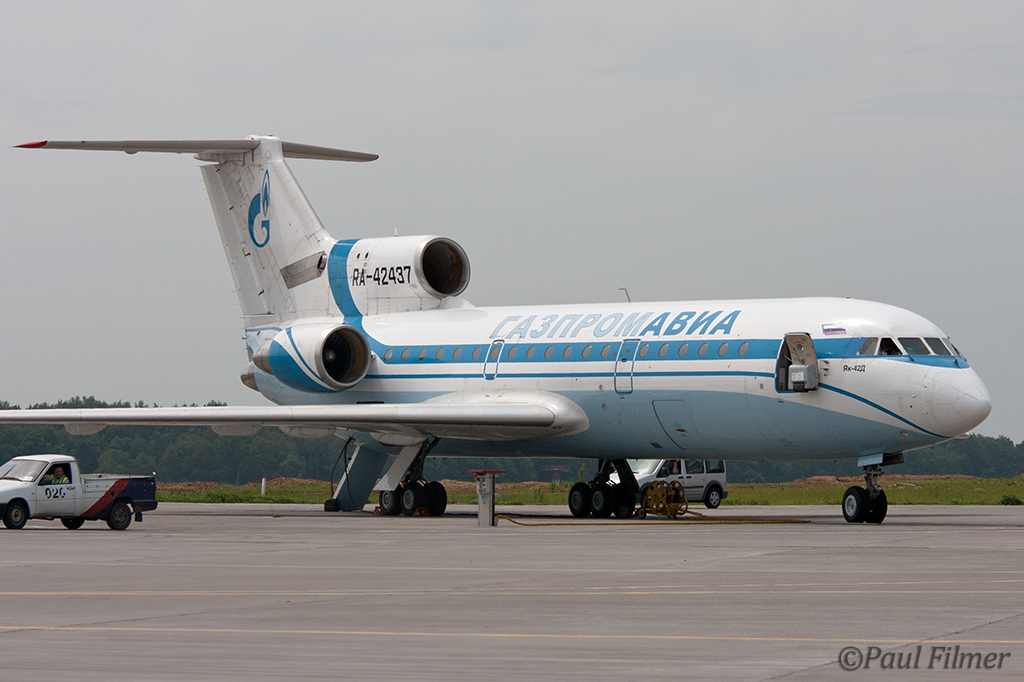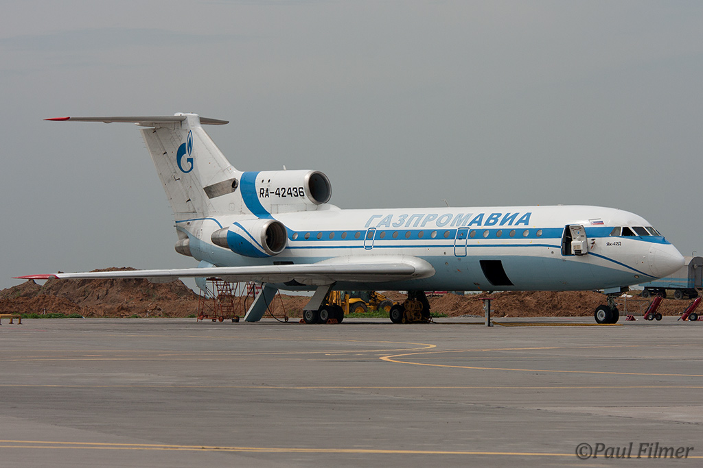 We saw a couple of operators of the iconic Yak-42. Kuban Airlines based in southern Russia have a fleet of 12 Yak-42s but have announced that they will be replaced by either the Boeing 737-700 or the An-148. Another prominent operator of the type is Gazpromavia which is an airline owned by the oil giant Gazprom, and we saw two examples in service on the ramp here. We saw the old colour scheme on the active Yak-42s plus their new scheme on a Tu-154 that arrived while we were shooting. As a sign of things to come a Boeing 737-700 also was seen in the new colours.