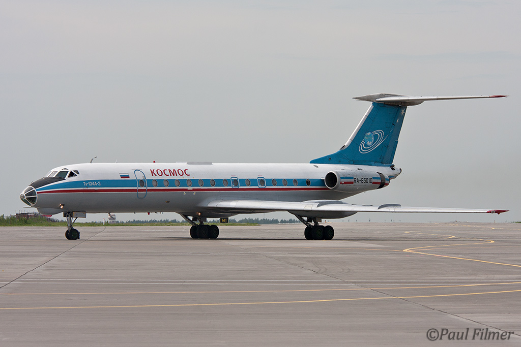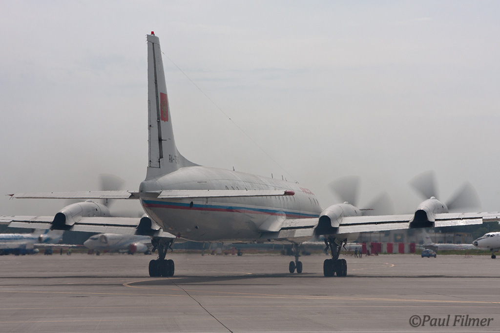 And then we come across a couple of real gems that are not often seen. Daghestan Airlines have a total fleet of only four Tu-154s with three of the most modern Tu-154M and a single Tu-154B-2 which is a much older variant - It was this single example that we caught taxing. This is the sole airline in the Republic of Daghestan which is a predominately Muslim country surrounded by Azerbaijan, Chechnya and Georgia and is still suffering from a guerilla-war. Kosmos has a small fleet of An-12 and Tu-134 aircraft and it was one of these latter aircraft that we were lucky enough to see arriving on a scheduled flight.