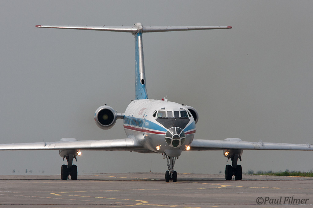 The following morning we were greeted by low cloud and rain which we were told is pretty typical weather up here. We were so lucky to have had glorious weather the day before for our access to the pair of airfields. What Tu-134 would await us for the return flight? Much to my joy it was a glazed-nosed example in the form of RA-65148. We had flown both the solid and glass-nosed examples which left me happy as the chances to fly these classic pocket-rockets is slipping away rapidly.