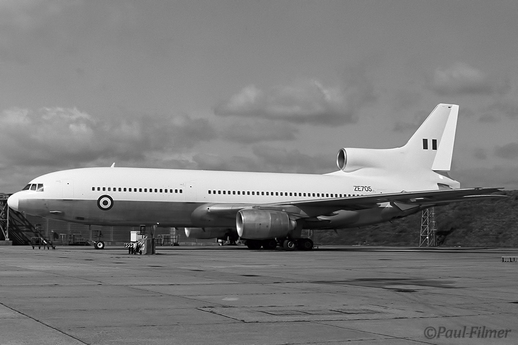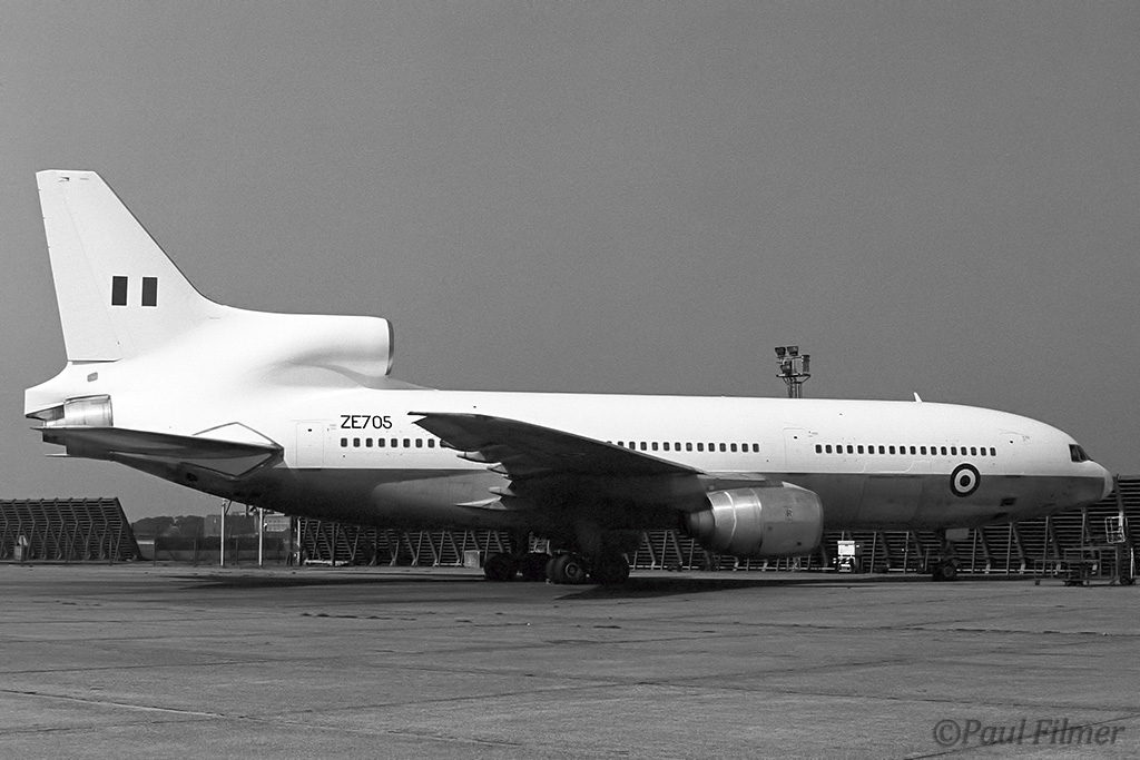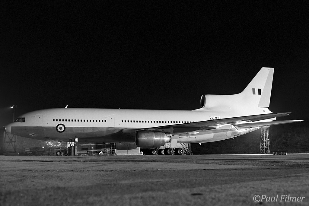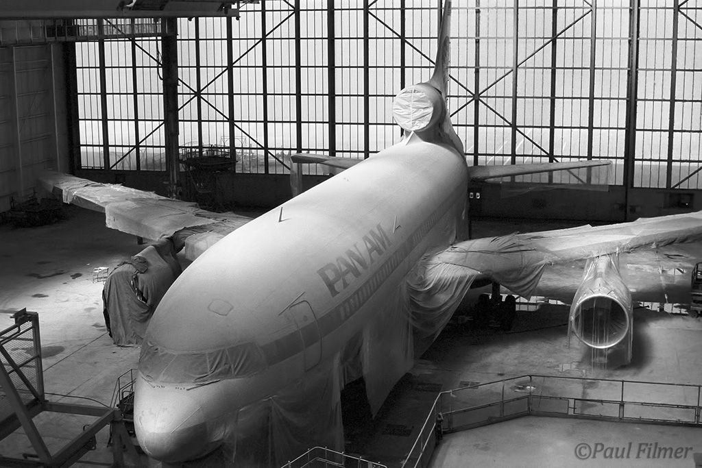Pan Am L-1011-500 N509PA is seen in the British Airways hangars ready to be painted for the RAF, and in other shot in the partially finished paint job, now as ZE705.