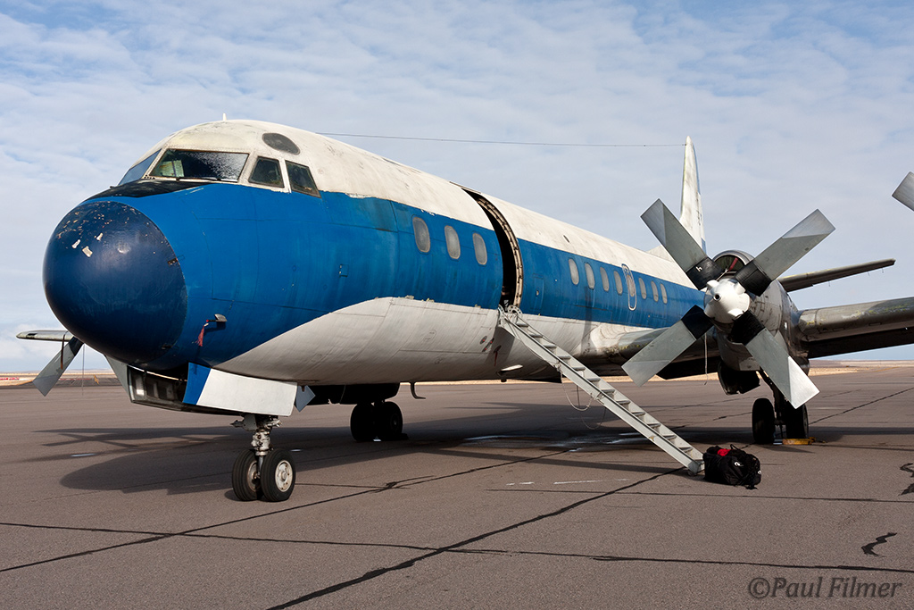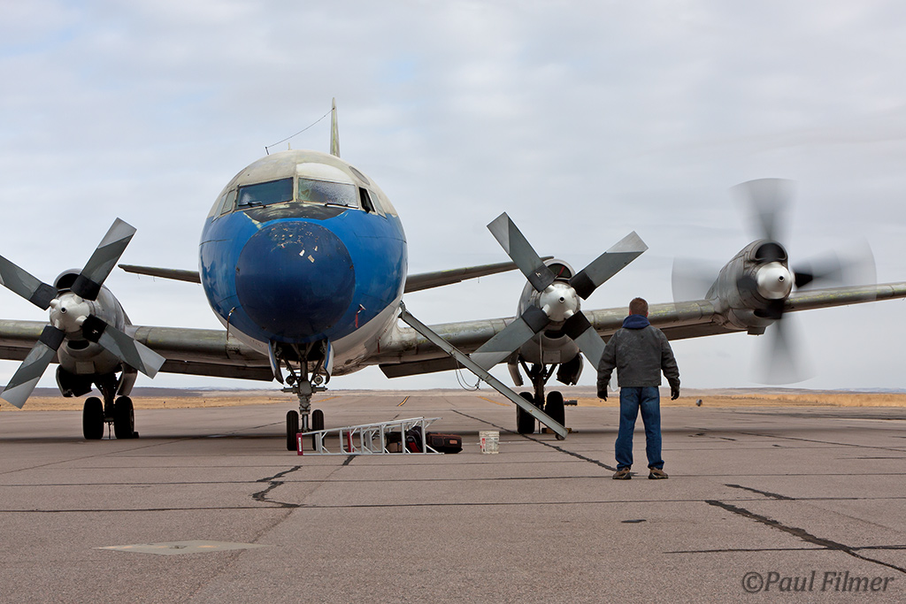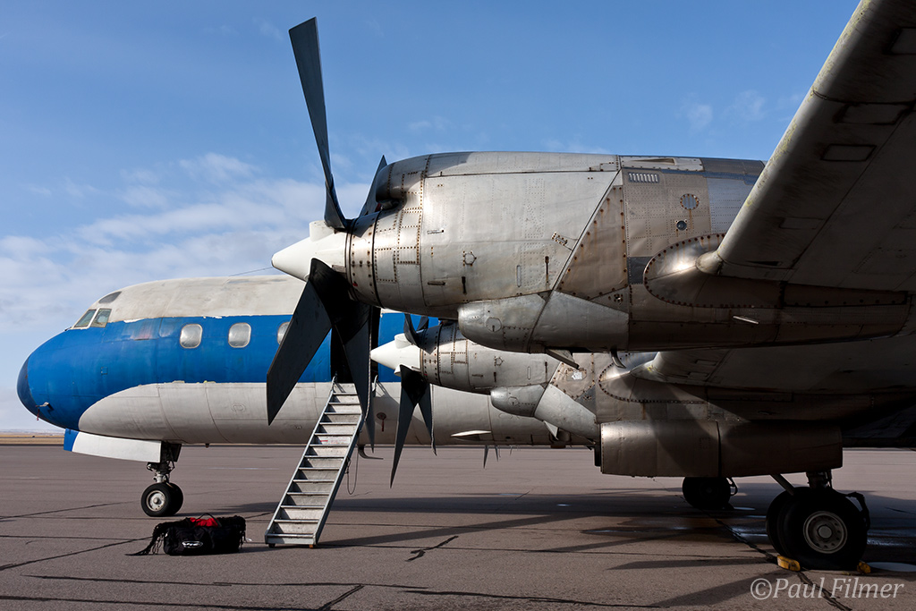 I drove the five hours from Colorado to visit the crew on 19 December 2011, having to drive on black-ice part of the way north. A propeller regulator failure would have forced a three-engined ferry flight, which on its own would not have been a problem, except that a leaking oleo on the right undercarriage would have also required a wheels-down flight. One issue wouldn't have been enough to have stopped the flight, but both together wouldn't have been a good idea, and with the holiday period approaching and spares needed from Red Deer, Air Spray sensibly decided to pick up the crew with one of its Aero Commanders and re-visit the aircraft's issues when more time was available.