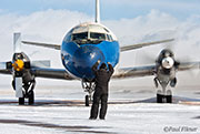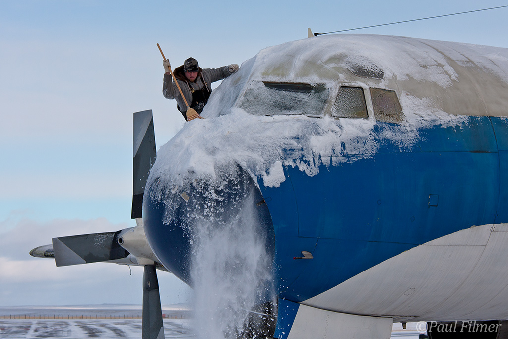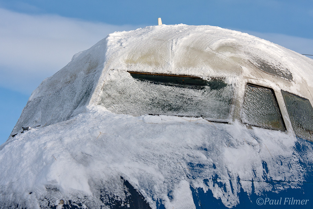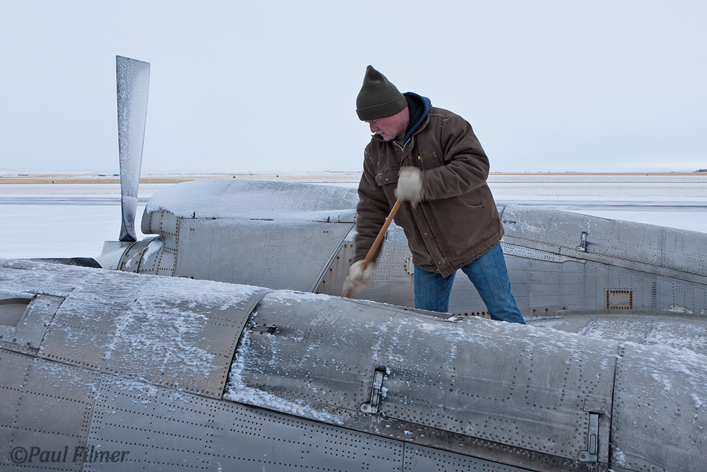 After the aircraft was checked over thoroughly it was time to get the old girl free of the ice and snow that had accumulated over the last few weeks. If you are not familiar with Wyoming, it is a very windy state, and on this occasion the snow on the ground was whipped up into small thin peaks in some places.