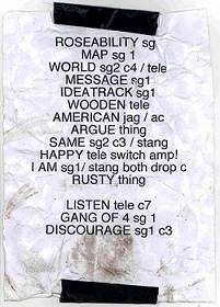 I'm glad to report that they haven't lost any of their ability to give a great live show, even with a whole clutch of brand new songs. Roddy still has trouble keeping his trousers over his hips while wandering around the stage.. mad Bob now sports a blonde beard, but has the same trademark flailing hair while punishing his poor, poor bass... Rod now joins in even more harmonies, but still finds time to bounce and jump around, while his guitar screams for mercy... then there's Colin and Jeremy, as ever, quietly getting on with their respective jobs of drums and second guitar. So it's really buisness as usual. Half way through 'Rusty' one of the road-crew runs on to the stage to cut the song short. There seems to be something wrong with the PA. The lads amble off bemused, after Roddy tells us that the PA has problems and they'll be back in five minutes. Fifteen minutes later, after frantic rushing around by the venues staff, the band come back on to play 'Listen To What You've Got'. At the end of that number a road-crew member comes back on to stop them playing again. It seems the PA is broken on at least one side. After a couple of minutes discussion between the road-crew and the band, Roddy asks the band "Shall we end it now, or play another song?" They decide to play on, with Roddy telling the crowd "It's half broken now, so we may as well break it properly", and launch immediately into the all out assault of 'Captain'. And what a nice treat that is, as they don't play this oldie that often now. It's certainly nice to have them back. skippy set-list: Roseability / I Don't Have The Map / You Held The World In Your Arms / I'm A Message / Ideatrack / These Wooden Ideas / American English / When I Argue I See Shapes / Stay The Same / Happy To Be Here Tonight / (I Am) What I Am Not / Rusty (abandoned) / Listen To What You've Got / Captain |