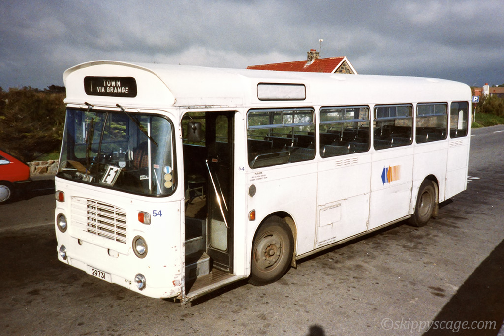 2 and 9. Bristol LH #54 LH/1240 parked at the outbound E terminus at Grande Rocques in 1991.