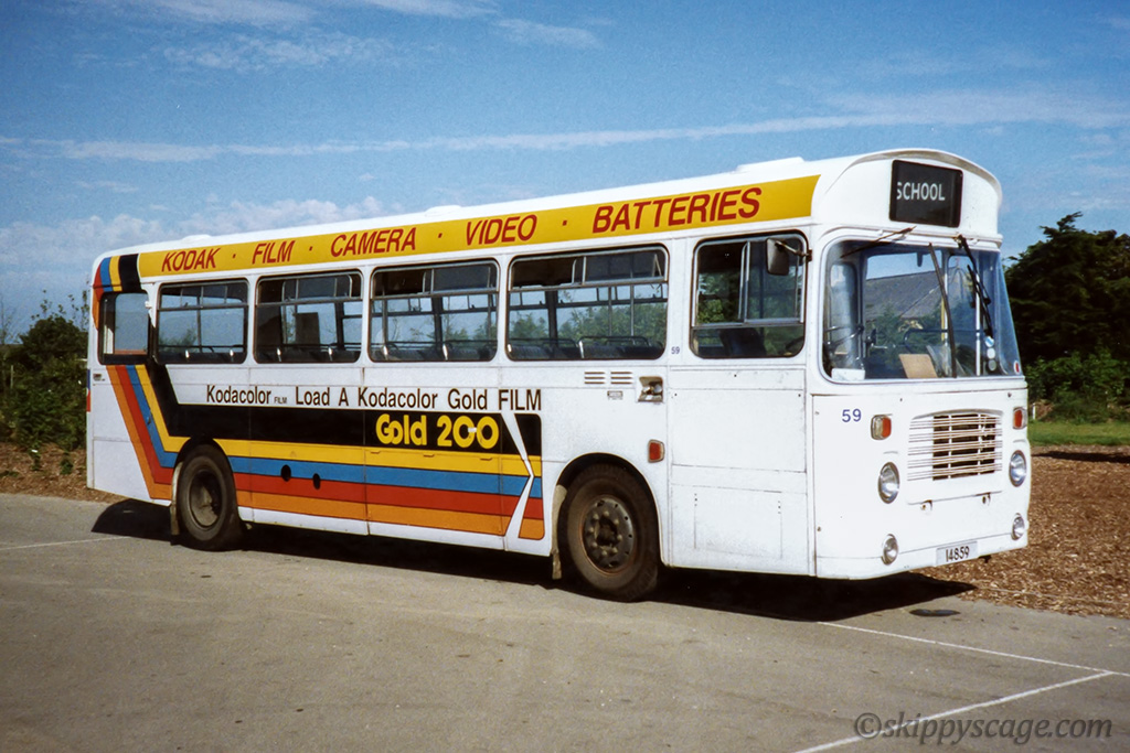 3. Bristol LH #59 in 1991 waiting at a school for pickup in its Kodak colours.