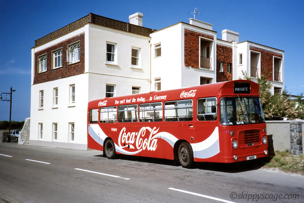 5. Bristol LH #61 LH/1285 parked on the side of the road on a pub crawl in 1991 at the L'Eree Bay Hotel on its Coca Cola colours.