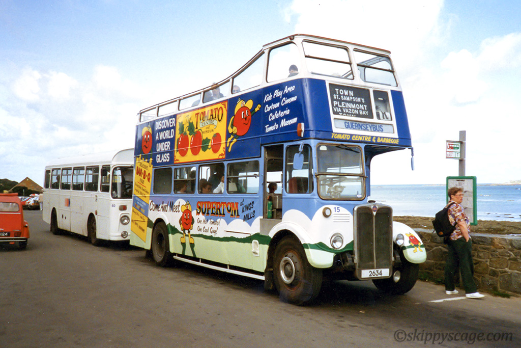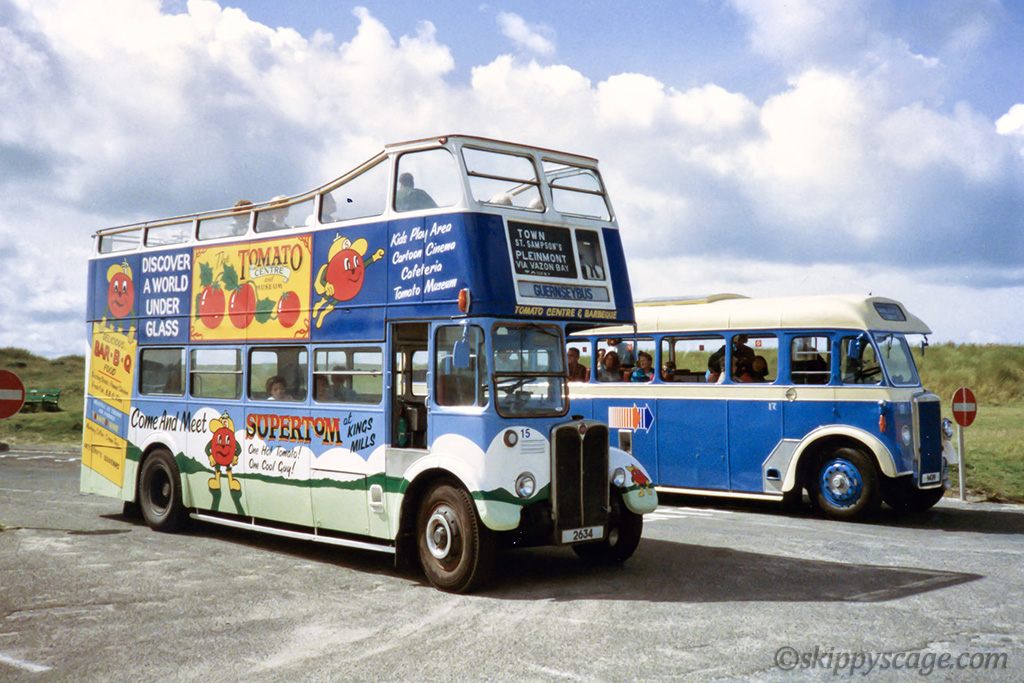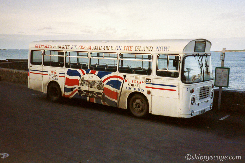 In between it was painted in Guernsey Tomato Museum colours and is seen in photo #13 in 1992 again at Pleinmont.