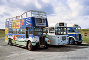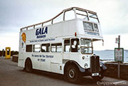 Originally with London Transport as RT1377, its Park Royal body was converted to an open top in 1988. It's seen here in the plain white scheme got Gala Holidays, before it was changed to an Island FM advertising platform.